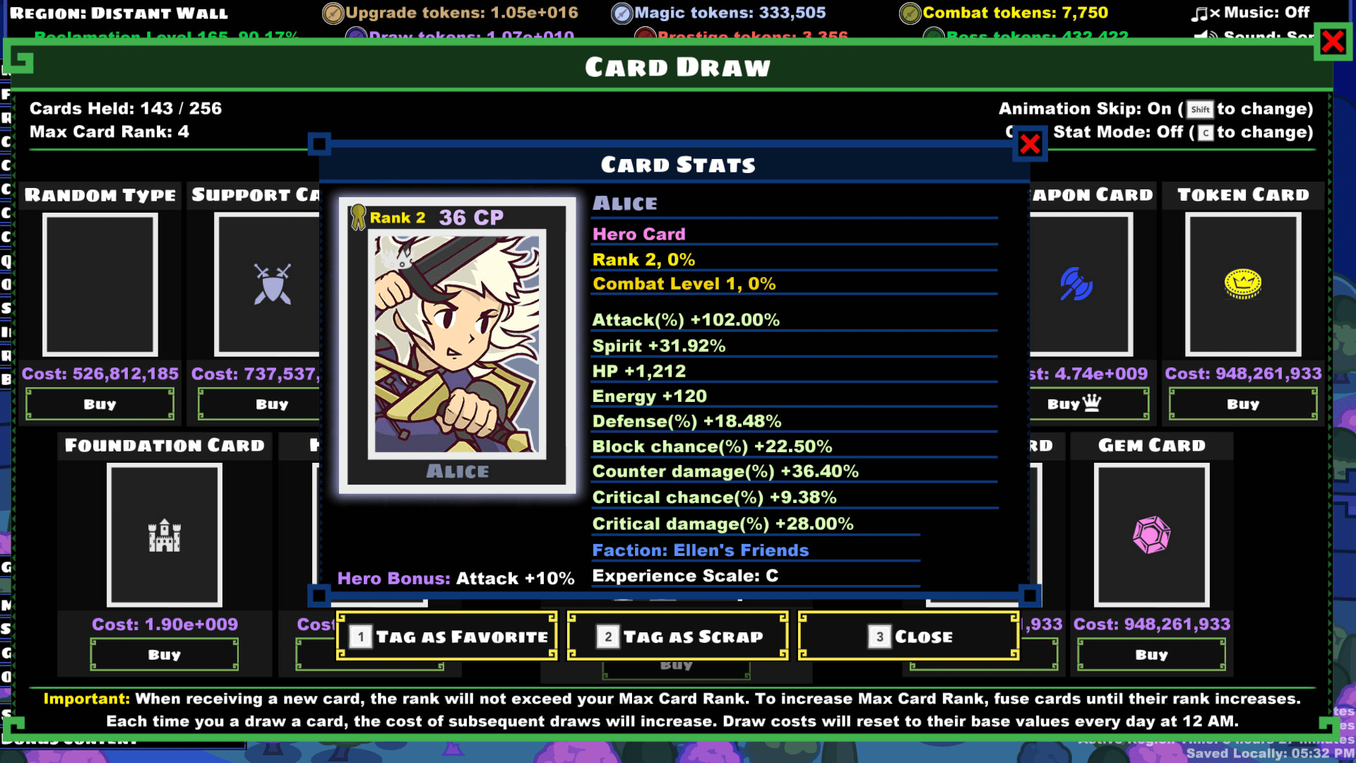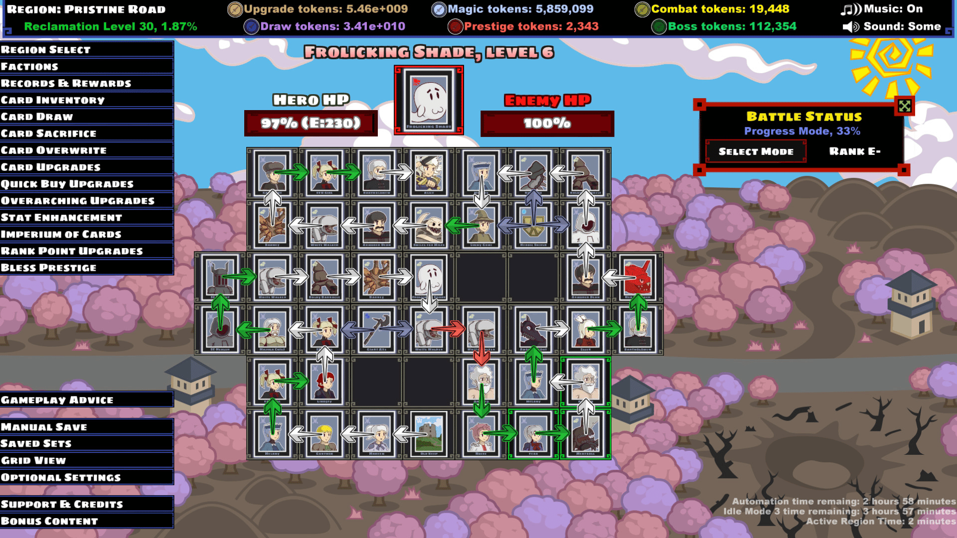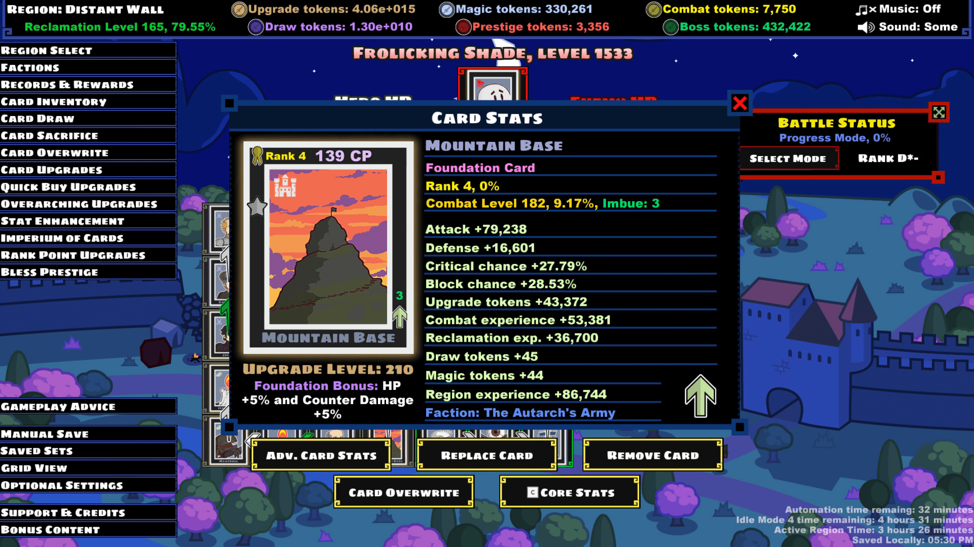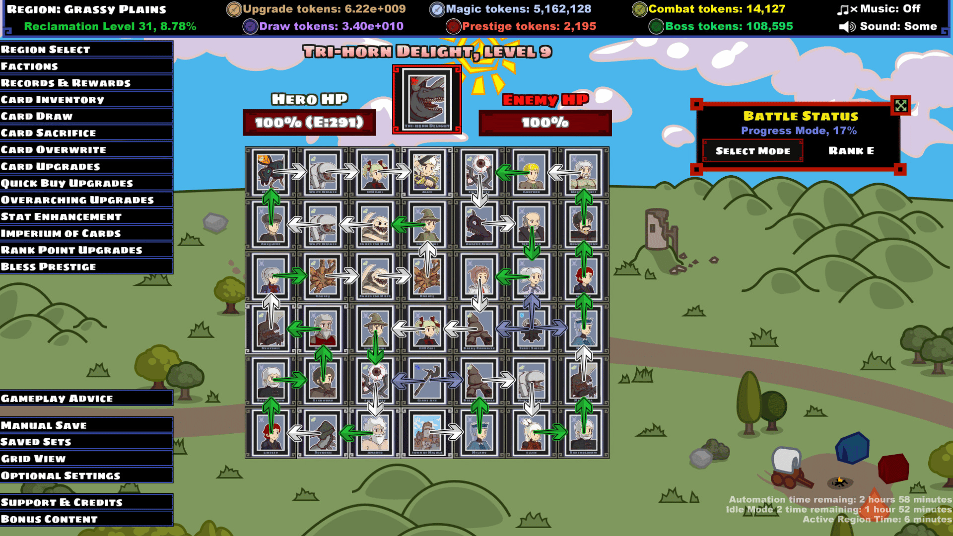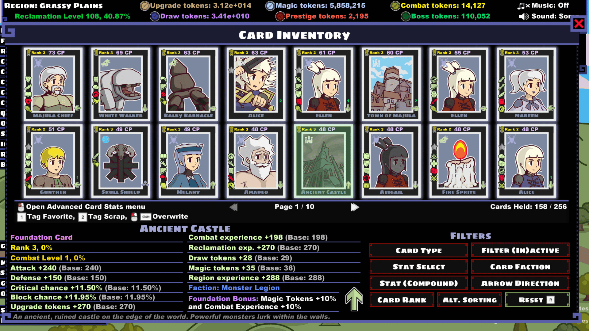 An idle game with a collectible card theme. Open booster packs, collect cards, build an elaborate stat chain, manage 6 different currencies, battle your way across 6 different regions, and reclaim the world!