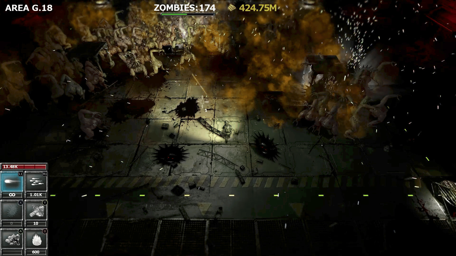 Refreshingly knock out massive impending zombies, in this new top-down shooter! Clean up zombies and earn gold to boost up your skill and ability, and aim for 100% area capture!