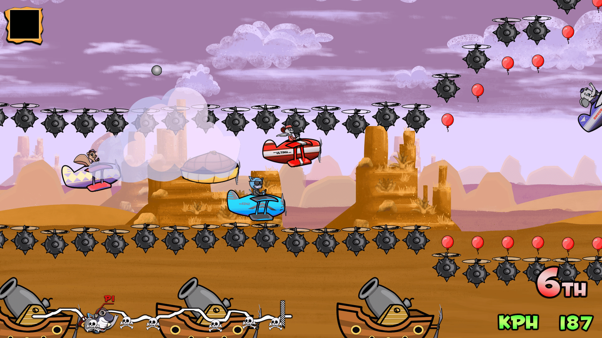 Biplane racer is a 2D racing game that puts you in a cartoon biplane to race against other goofy animals in hazard filled aerial tracks. 70+ levels in adventure mode or play against CPUs alone or in co-op in Grand Prix mode.