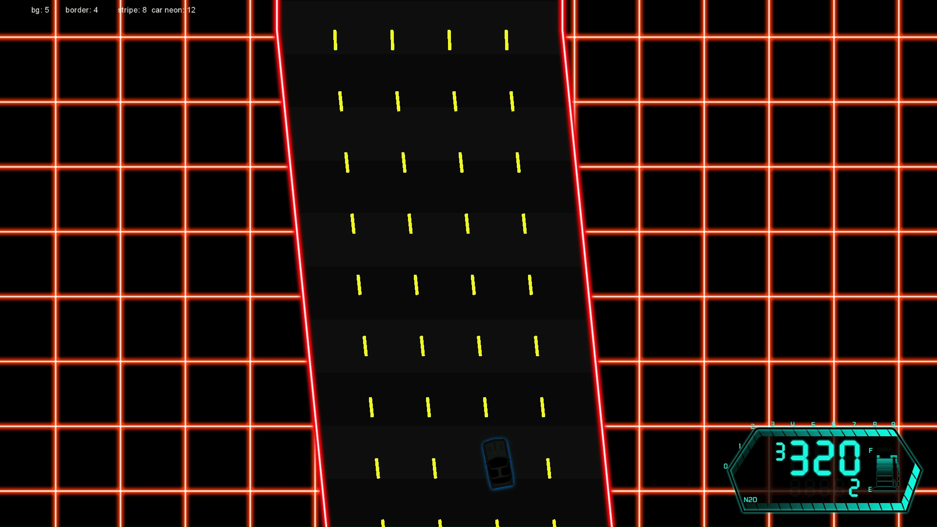 Razortron 2084 is a top-down racing game and the objective is very simple, race as long as you can on a procedural generated tracks, avoiding running out of gas and trying not to crash.