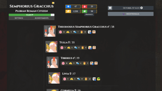 Citizen of Rome - Dynasty Ascendant is a family/Dynasty life sim set in the Roman Republic. You get to see how life was in the Ancient Republic, participate in their various customs, festivals and Ludi / sporting competitions, while raising a family and moving up in the social and economic hierarchy in the Republic. You can educate your children, marry them off, sponsor their elections and much more. You'll usually play as the eldest of your sons once your character dies. The game is open-ended without a set endgame just like in real life, but a grand goal for any ambitious Roman family was to land a Consulship of the republic. This could be your goal in the game as well, climbing the Cursus Honorum and becoming a "New Man" - "Novus Homo" Gameplay features: + Fully offline, no ads, no in-app purchases + Marriage, Birth, Death, and Succession + Property and economy + Several key Roman festivals + Traits and Skills + Education + Apprenticeships and employment + Elections and Class progression + Random interactions and events + Achievements + Dark Mode https://rome.rangergo.net/ Long live the Republic!