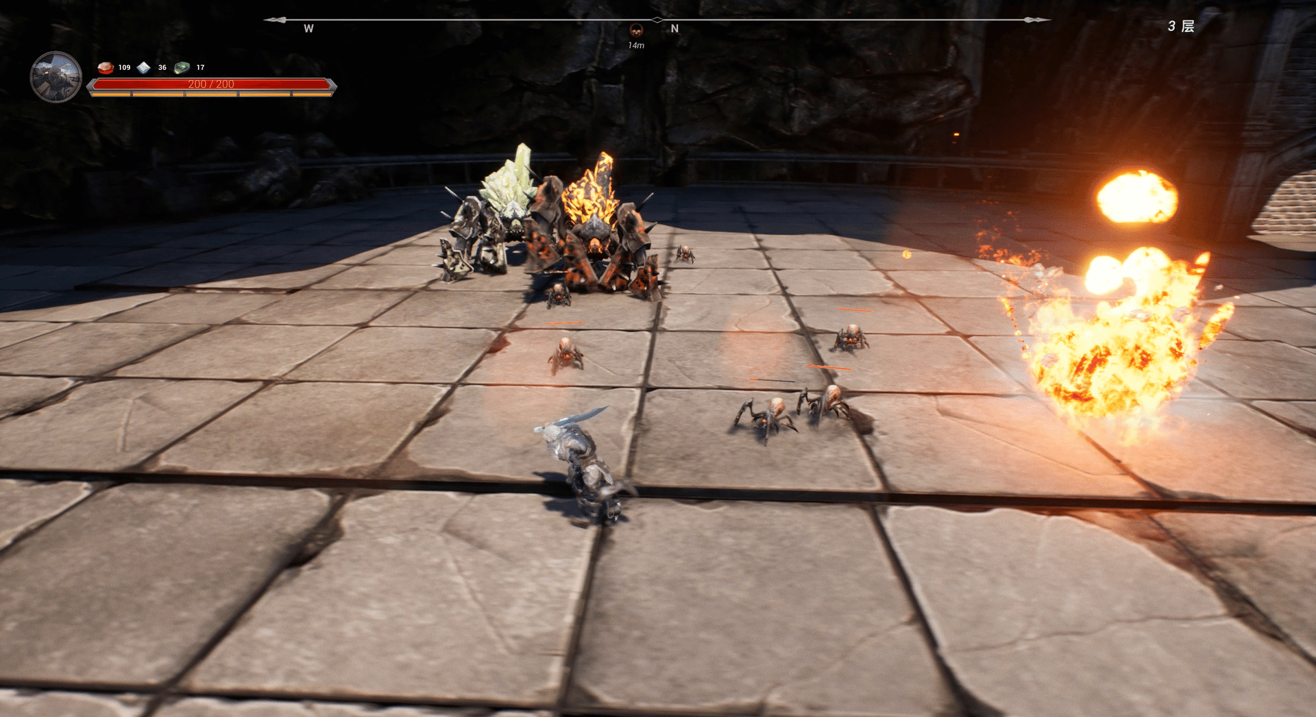 Endless Hell is a third-person action game. The game advances through a linear process, killing monsters to gain resources, improving their skill level, and killing the boss to the next level by killing the level.