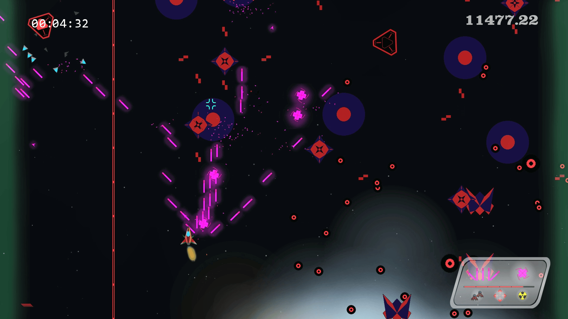 The Highscore is a non-stop action shoot 'em up. Survive by defeating waves of enemies, accumulate points, go as far as you can and beat your highscore. But to do so, you can only count on five lives, unique abilities and your own skill.