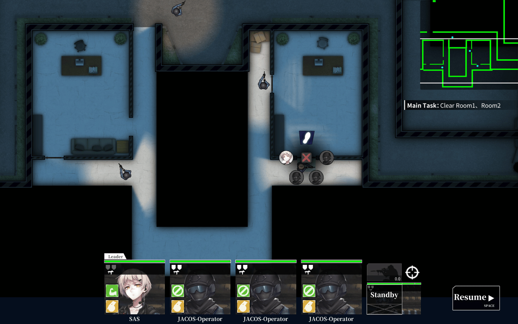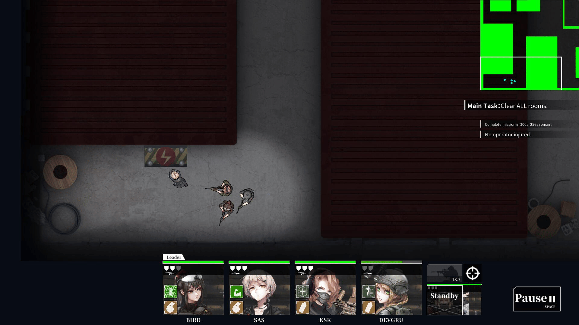 10-4 Indirect Contact is a RTT game. Player who acts as a commander , commands the girl operators to complete missions,like exterminating enemies,liberating hostages and dismantling installations,etc.
