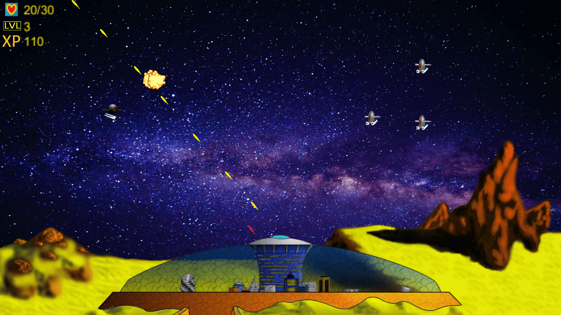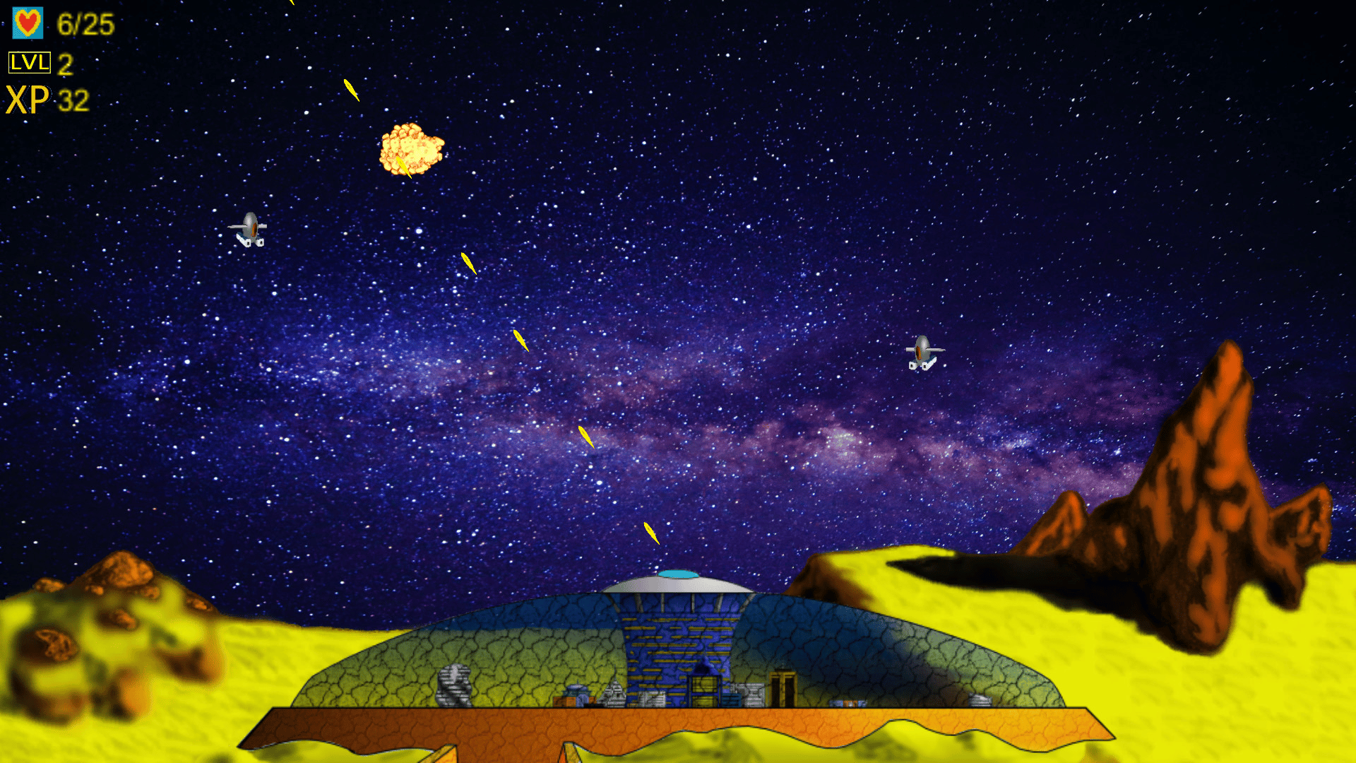"A short indie rpg turret shooter that is fun for children and adults alike. Save the city from the alien invasion using only the laser turret to shoot down attacking alien space ships."