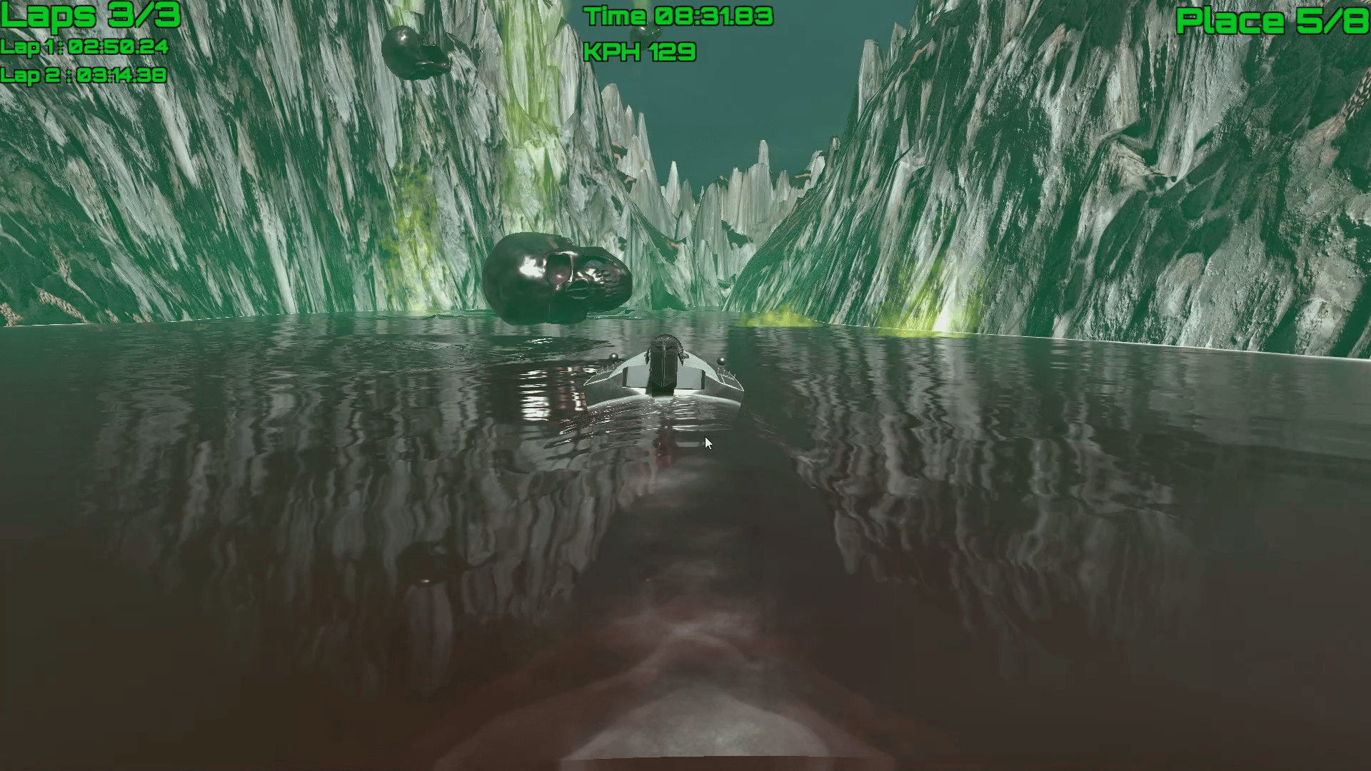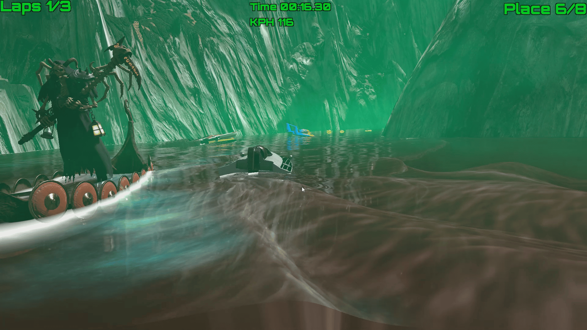 Jockey and fight for position around a gauntlet of creatures and traps in this aquatic bound multiplayer combat racing game. Can you keep your place in the lead, or will you be Rick Jamsed by the Kraken, caught up in a whirlwind or clobbered by a giant flaming skull from above?