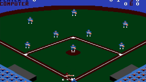 Baseball is an action game which can be played by two players or one player against the computer. The game allows you to bunt the ball or try for a homerun, steal bases, and throw several types of pitches from a fast ball to a curve ball. Several game variations are included which allow you to select whether the home or visiting team is at bat first, and whether or not a player can swing only at pitches that are a strike, or they can swing at any pitch.