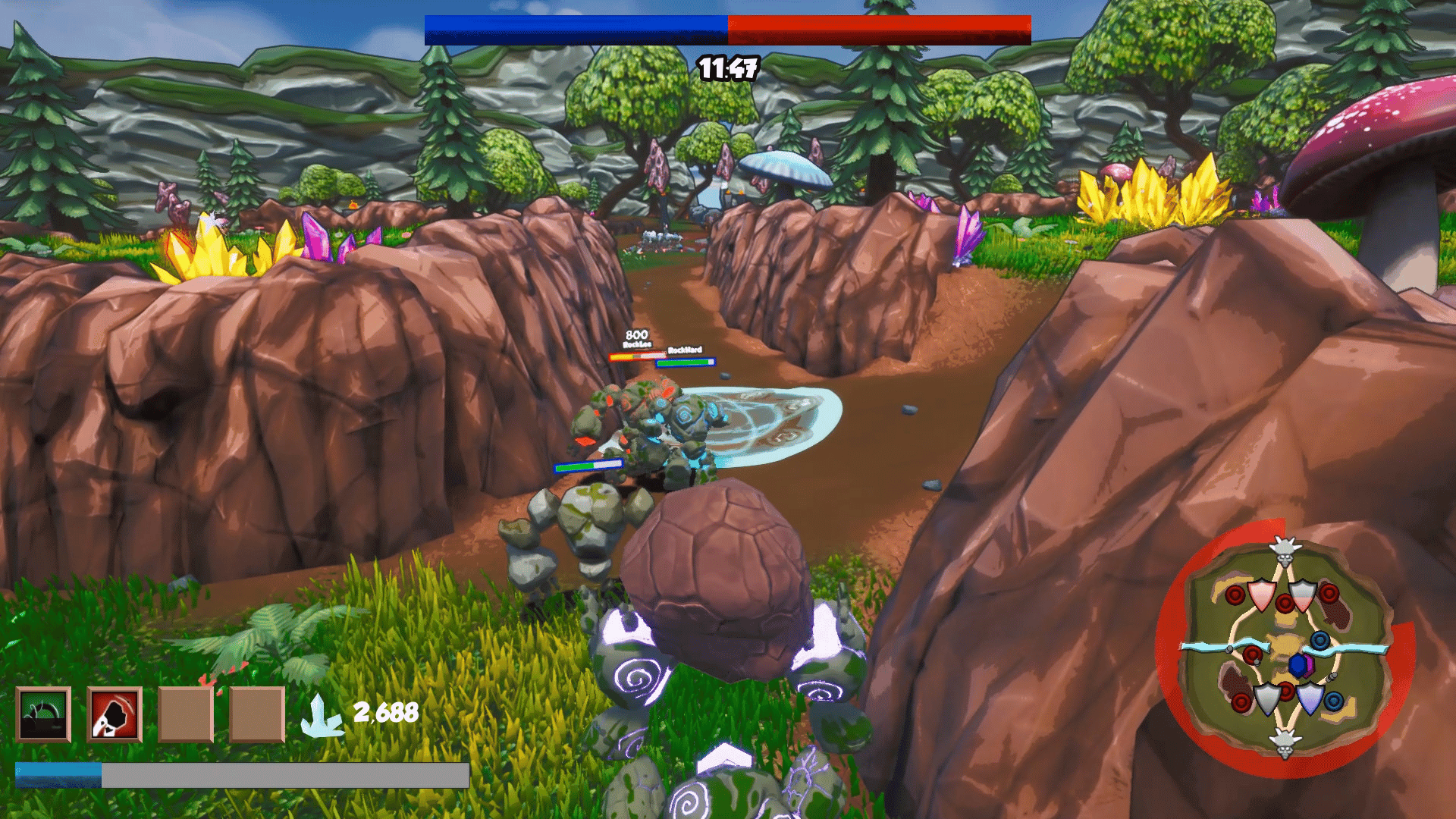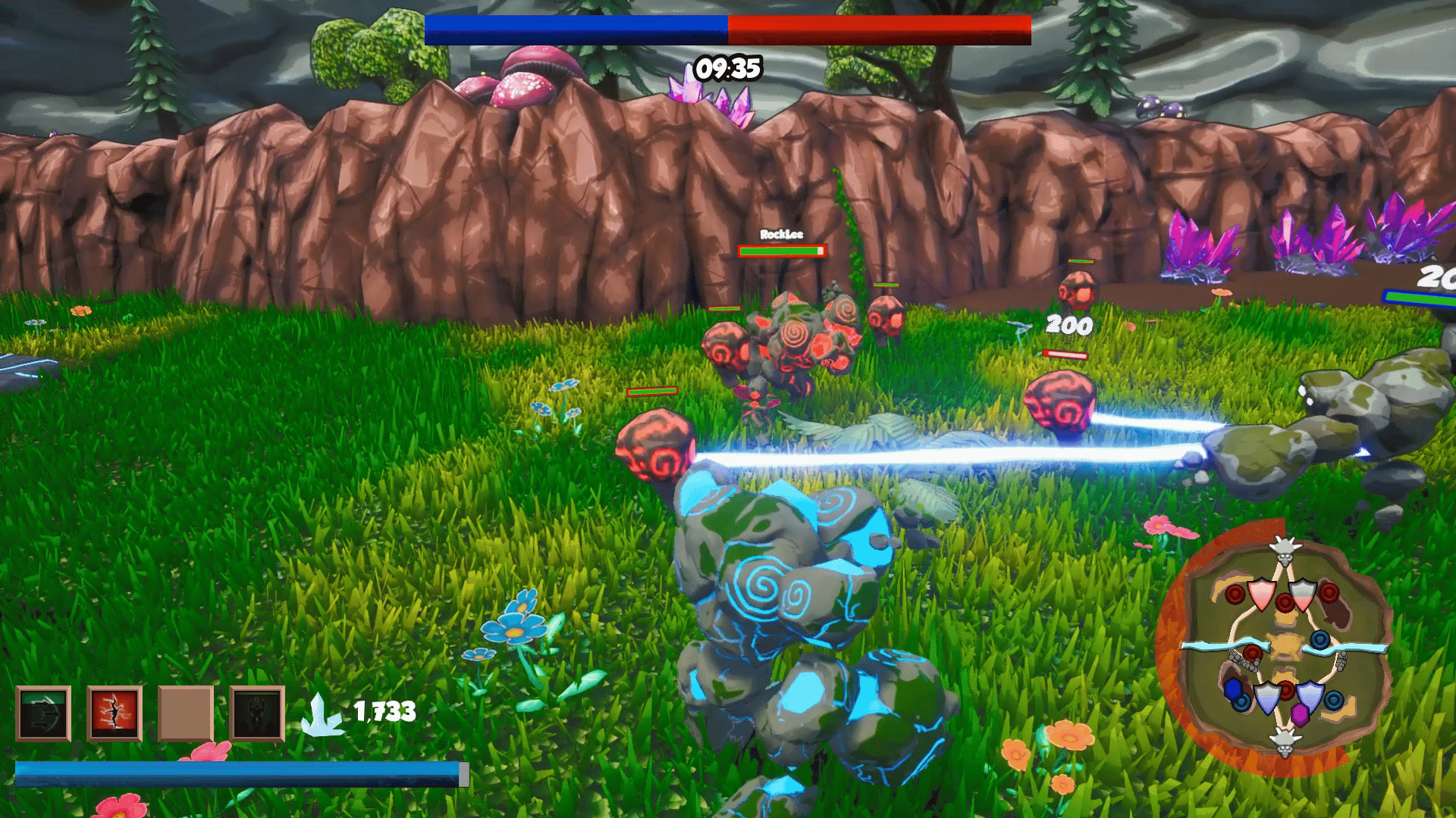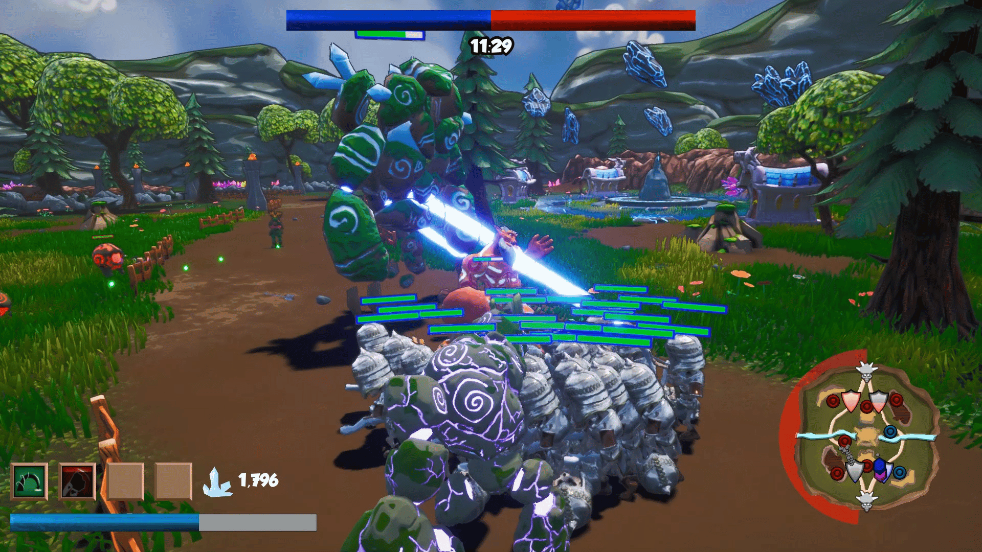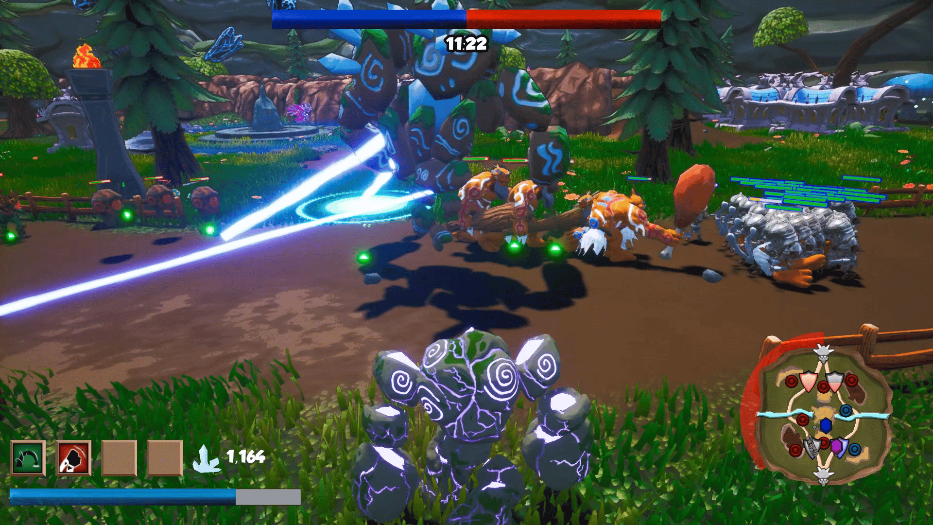 Crystal Command is a fast paced competitive third person action game with heavy focus on strategic resource management and army building. Secure control points and ore deposits through PvP combat to gain crystals. Players use crystals to purchase and upgrade minions that march down lanes and attack enemy waves and their defenses.