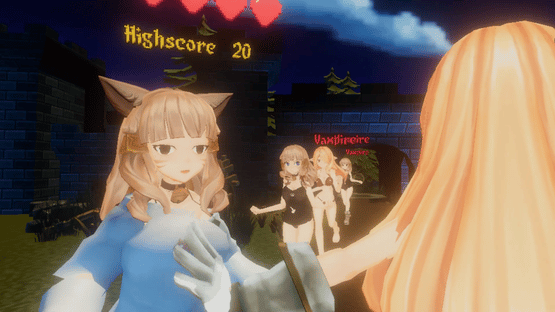 You are trapped in a town full of evil anime vampires. Anime Cat girl on one hand. Anime knight on the other, and unlimited waves of Vampires. Use the knight in to attack and defend the princess. this is a first person "combat" simulator.