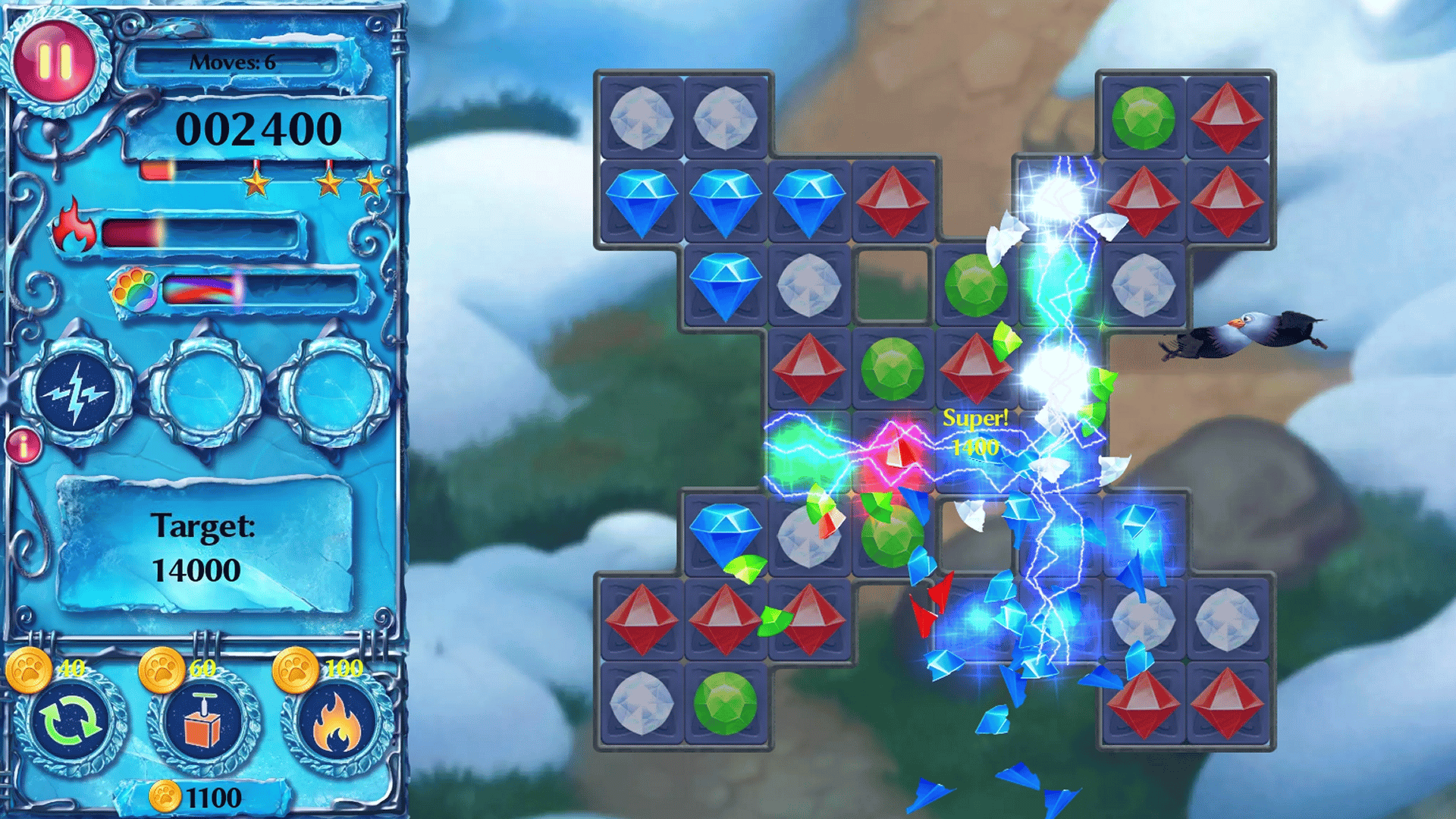 In this chilling match3 adventure, the Snow Dragon's icy breath is ready to destroy all it touches in the Mountain Lands. Only the magic of the Snow Jewels can stop the ruthless monster. Collect chains of gems and help bring back peace and tranquility to the Mountain Lands!