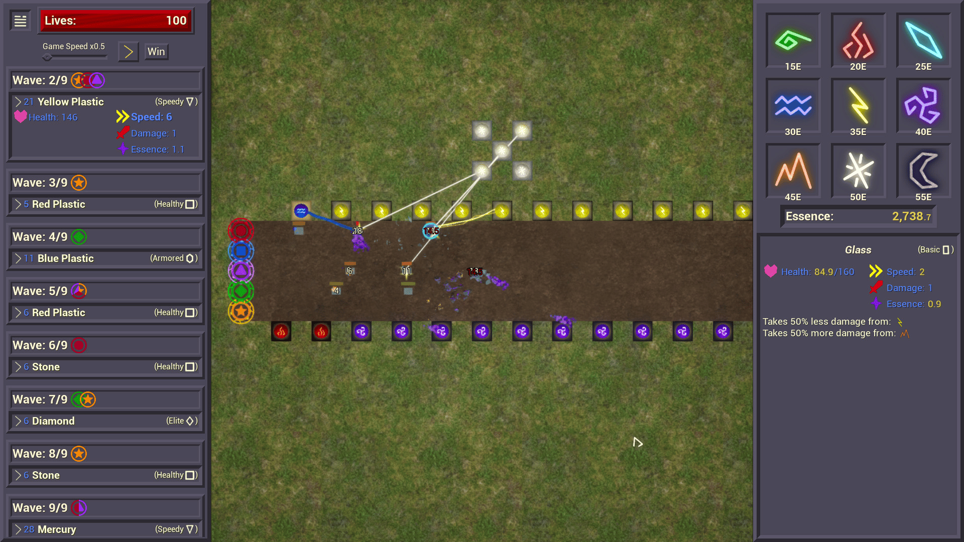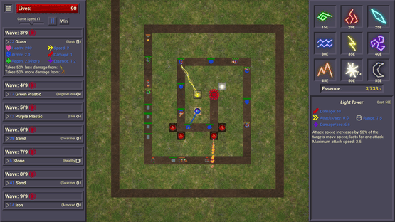 Melt sand, shatter glass, and rust iron in this epic elemental tower defense game. Combine elemental effects to beat powerful materials. Use cunning strategy and wit to take on impossible challenges. Unlock new abilities and power as you embark on this difficult journey.
