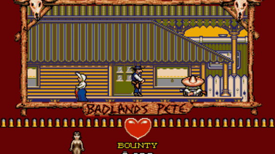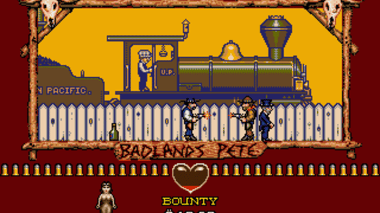 Get the hell out'a town. Badlands Pete Coyote is the meanest leanest six gun machine. His quick fire two-handed gun style and steely glare are recognized and feared by desperadoes everywhere. Take on the roll of Badlands Pete and rescue the Governor's daughters. Battle mountain men, renegade Indians, Mexican banditos, rustlers, and all sorts of crazy characters. Take nothing for granted, the old ladies, squaws and saloon gals may not be the sweet little things you think. Unique Strip-A-Mation combines smooth scrolling with 3D sprite graphics for greater depth and added reality.