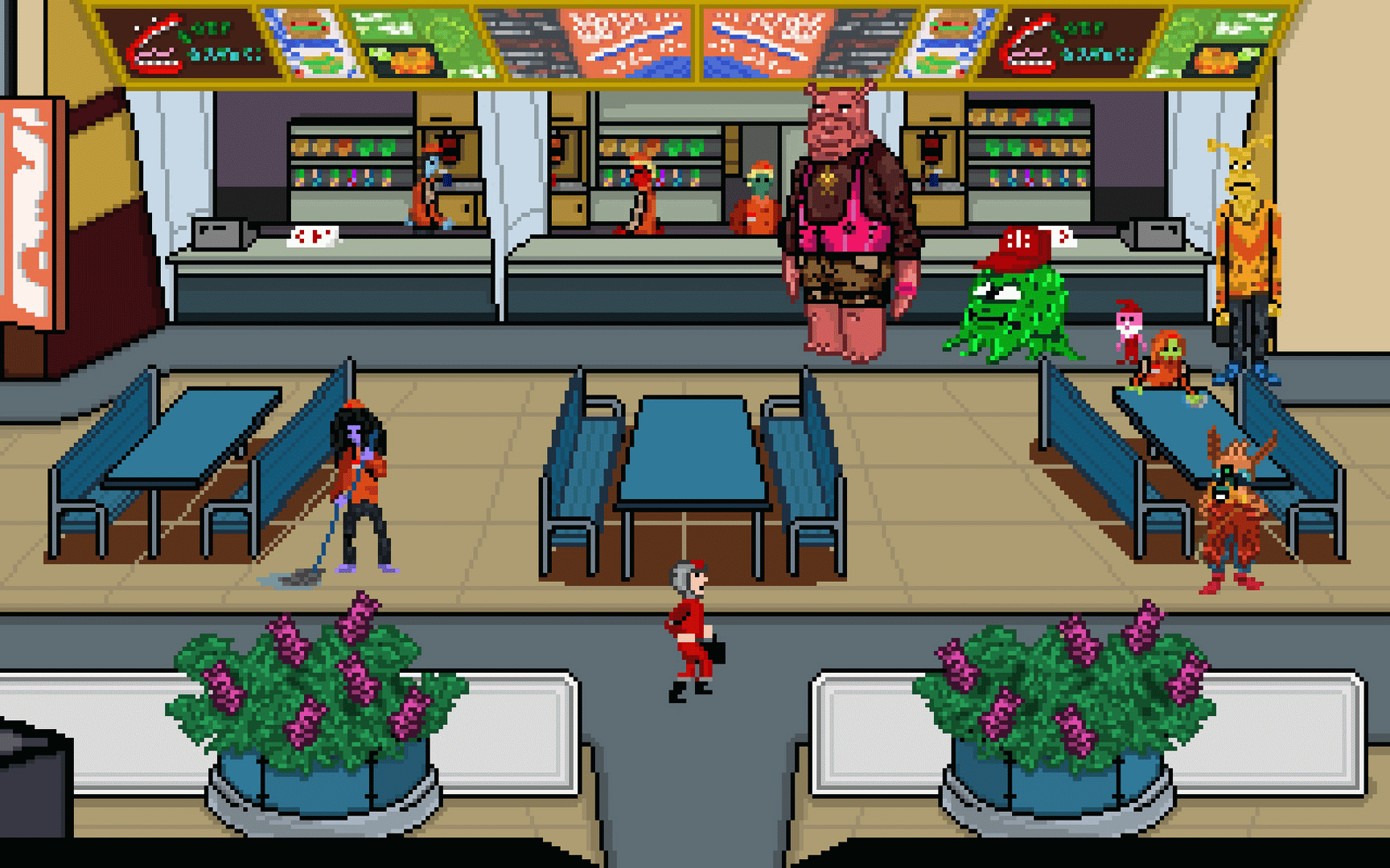 Space Komandirovka - retro-style adventure game that tells a story about a simple Soviet Union cosmonaut, who is stuck on planet Akmola which is inhibited by alien-capitalists.
