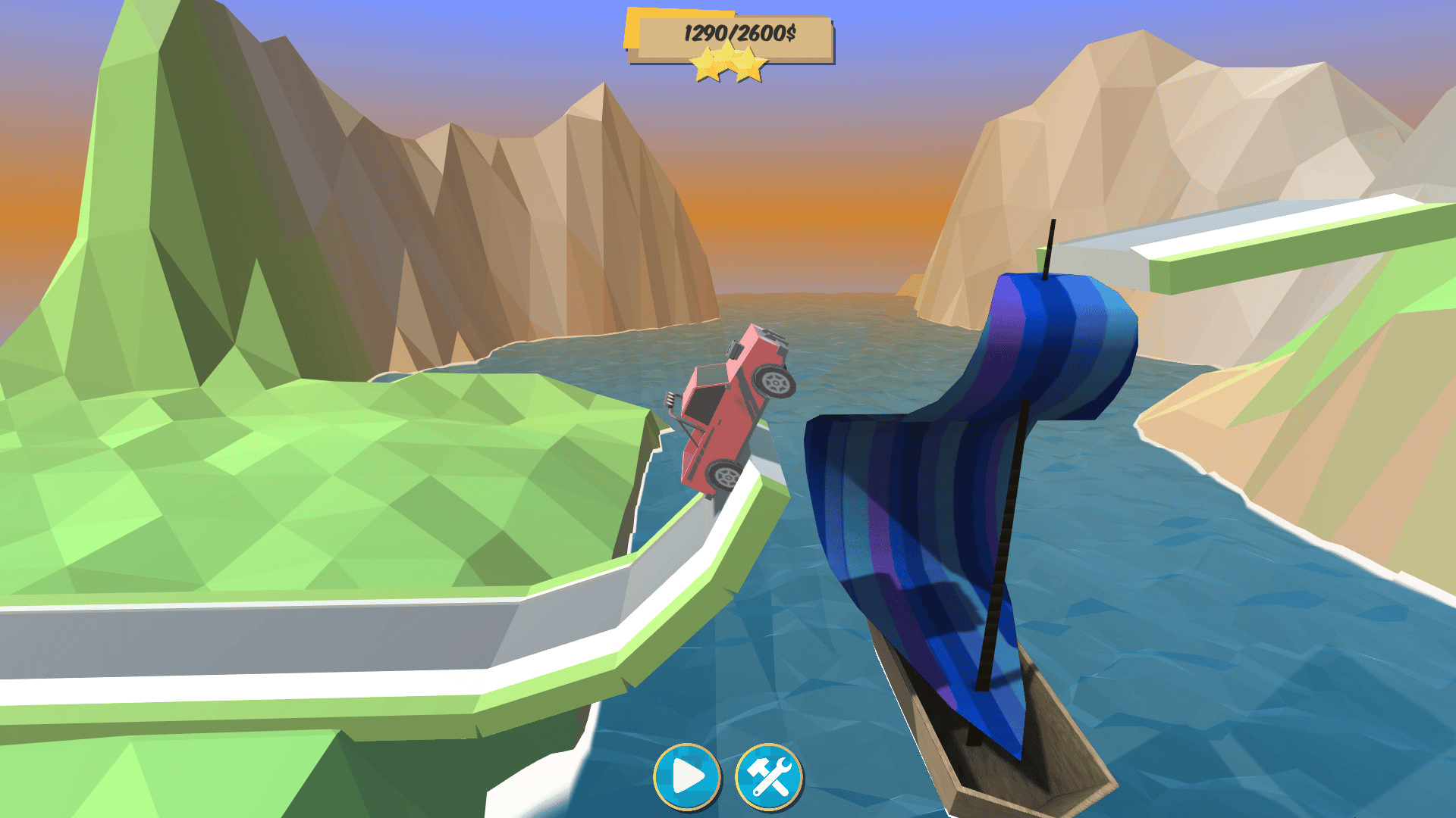 Bridge Builder Racer is the ultimate test for both your engineering and driving skills. You'll have to build your bridge using the most cost effective route, and then drive your car over the bridge to go from point A to B. Each level has a total of 3 stars to be earned. Spending less money gives you a higher star rating. Can you beat all levels with 3 stars?