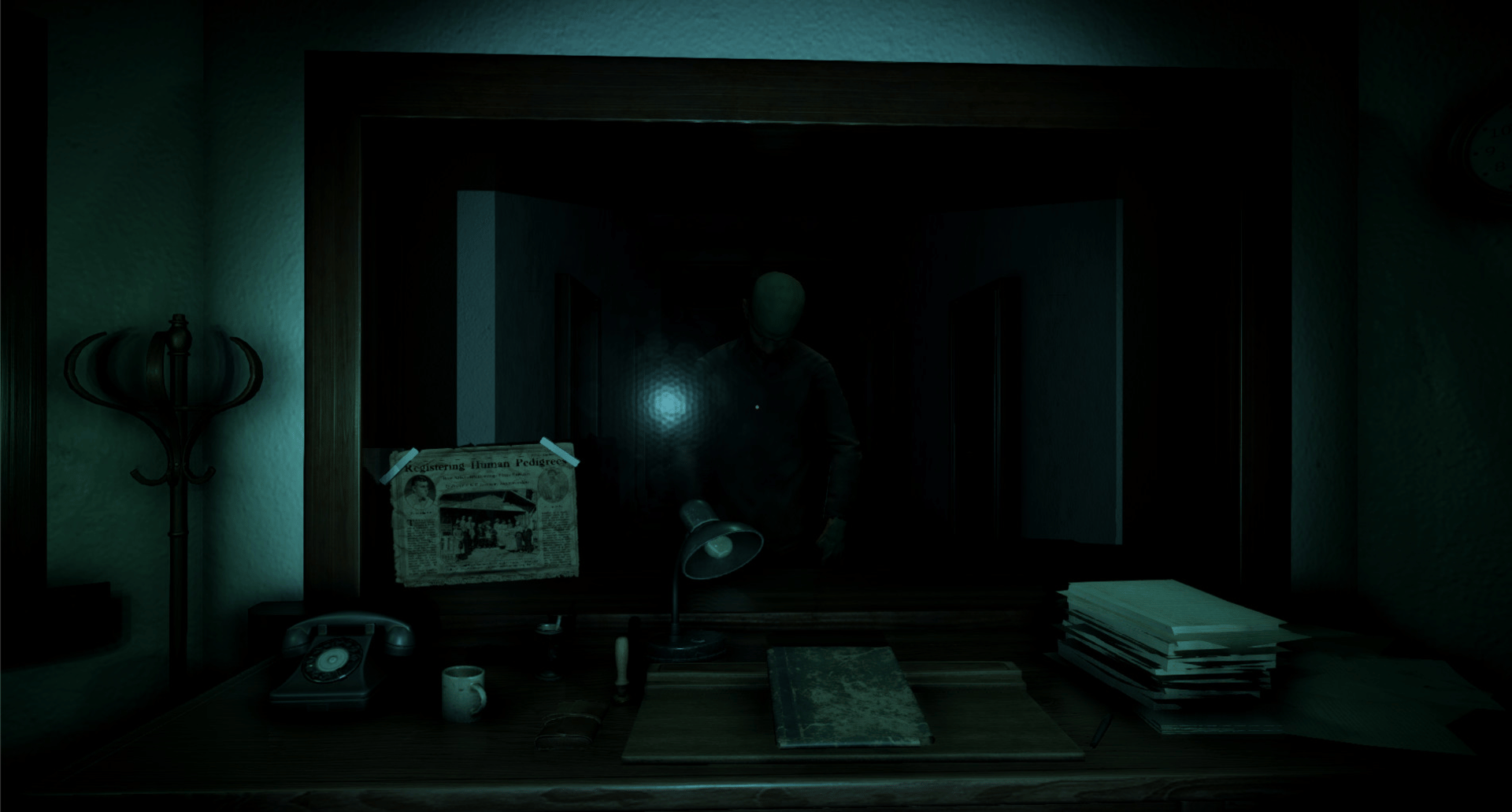 Descent of Man is a stealth, survival horror game. Experience fear, narrative, and puzzle solving while hunted. Use deception to escape and unravel the dark history of a dystopian world's past and it's horrifying present.
