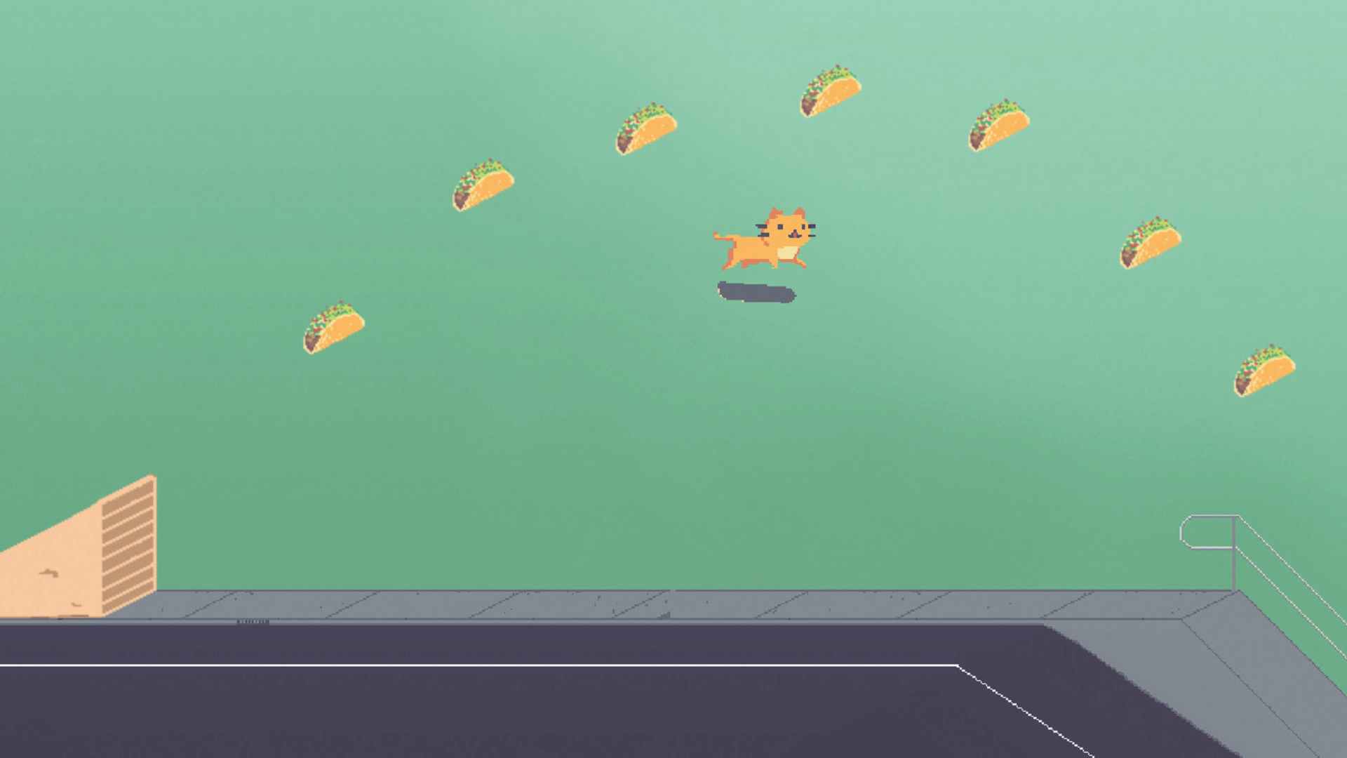 Dr. Tacocat is a skateboarding runner game with numerous tricks and grinds across an endless pixel crafted world. Pull kickflips while eating tacos and escaping the pug police.