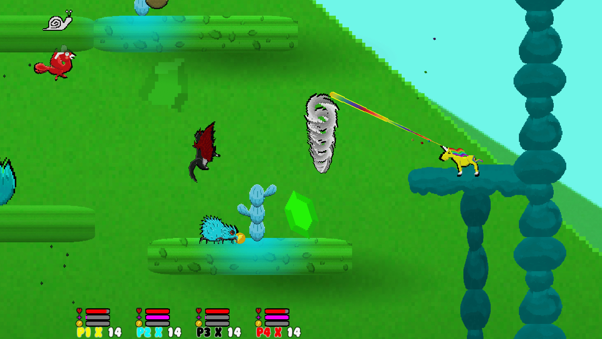Play as a Dragon, a Unicorn, and other mythical creatures! Team up to beat Co-op challenges, like the gigangic God-Fiends monsters battles, or fight in various Versus modes!