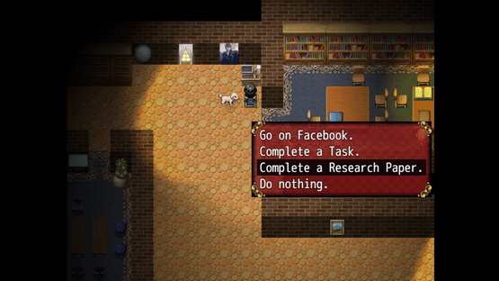 You are a graduate student and you must defeat the ultimate boss monster: your Thesis! Develop relationships with quirky allies and improve your stats by inspecting your surroundings and making difficult choices. Will you explore and alter memories for a chance at a better life? Will you risk looking back?
