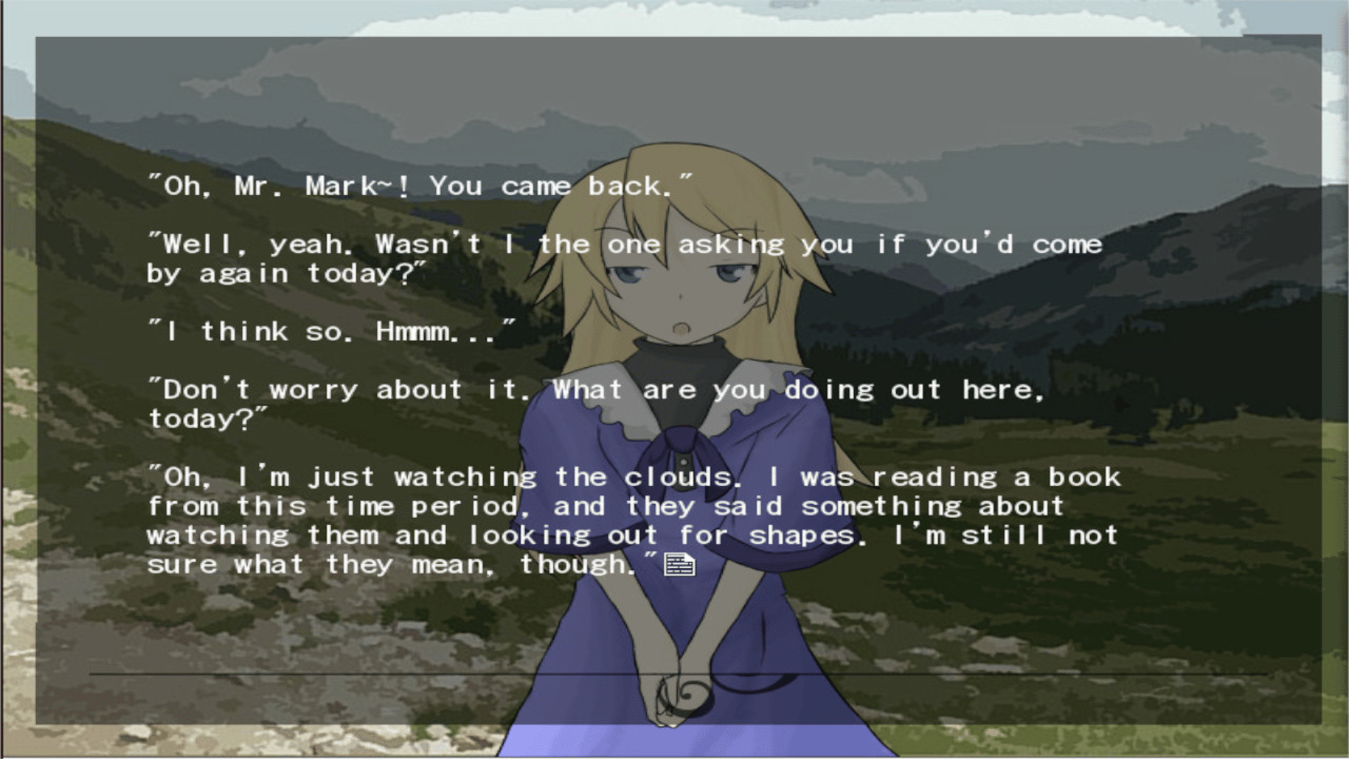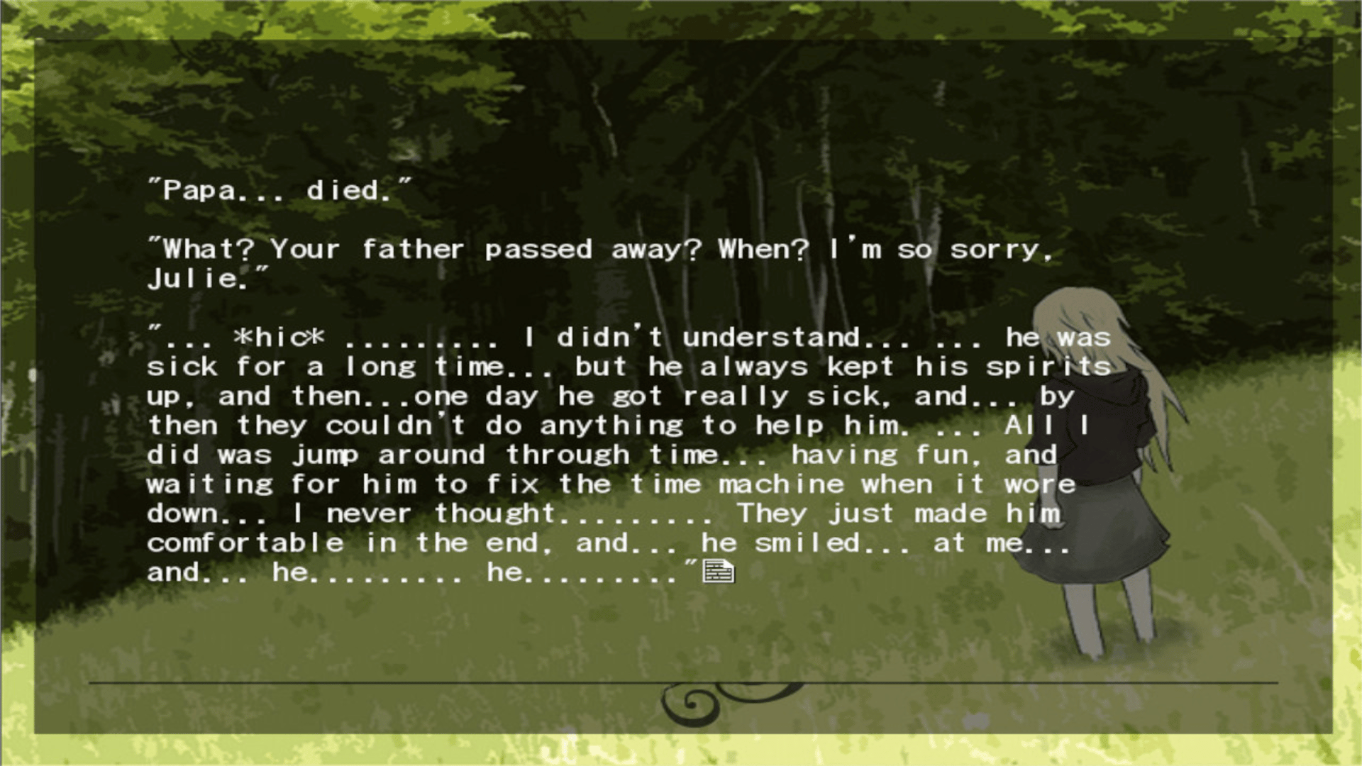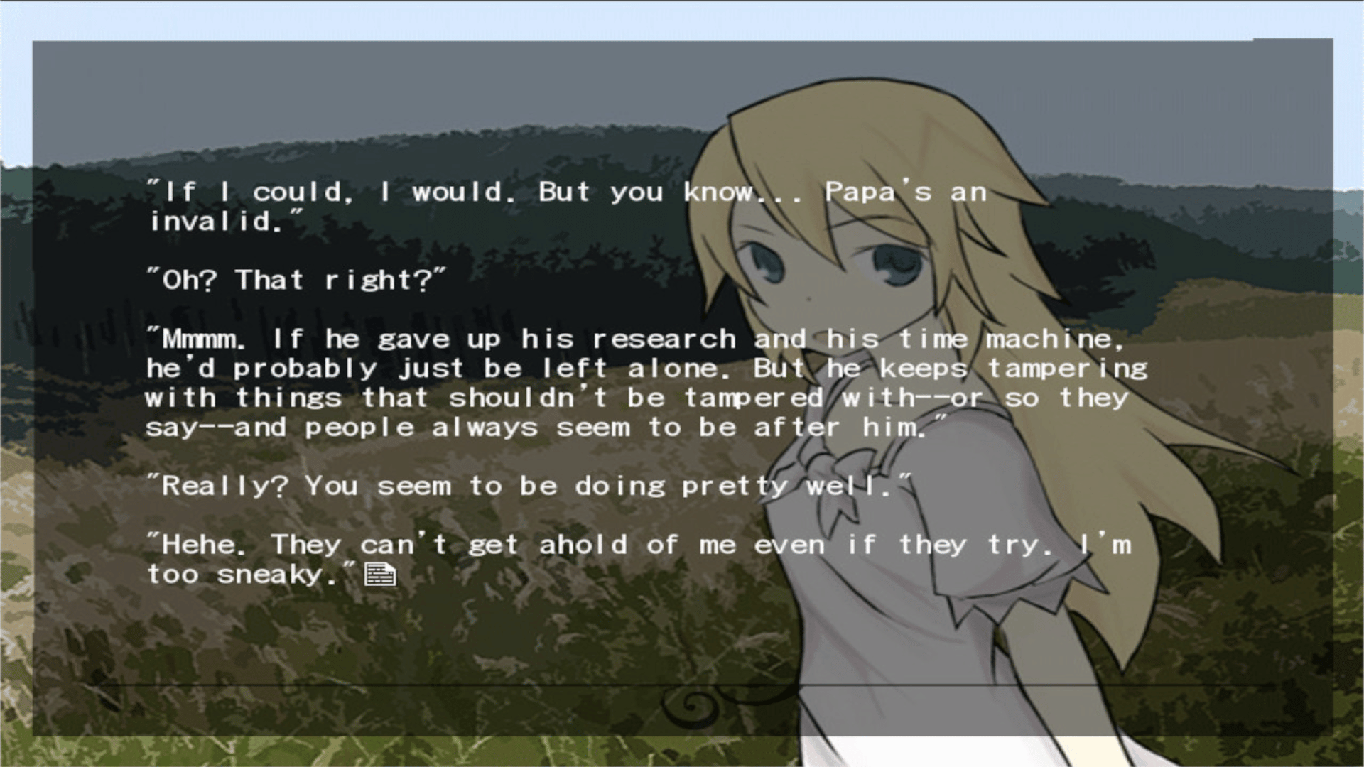 A short visual novel about a middle-aged man on his summer vacation, where he meets a strange girl who claims to be from the future. Adapted from a short story.