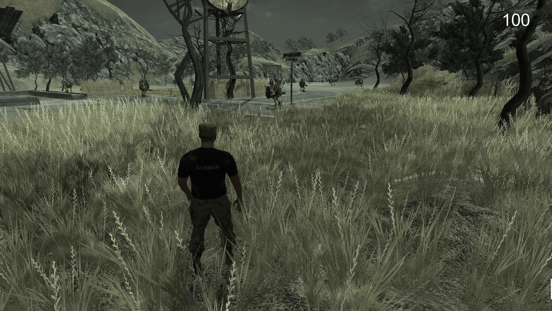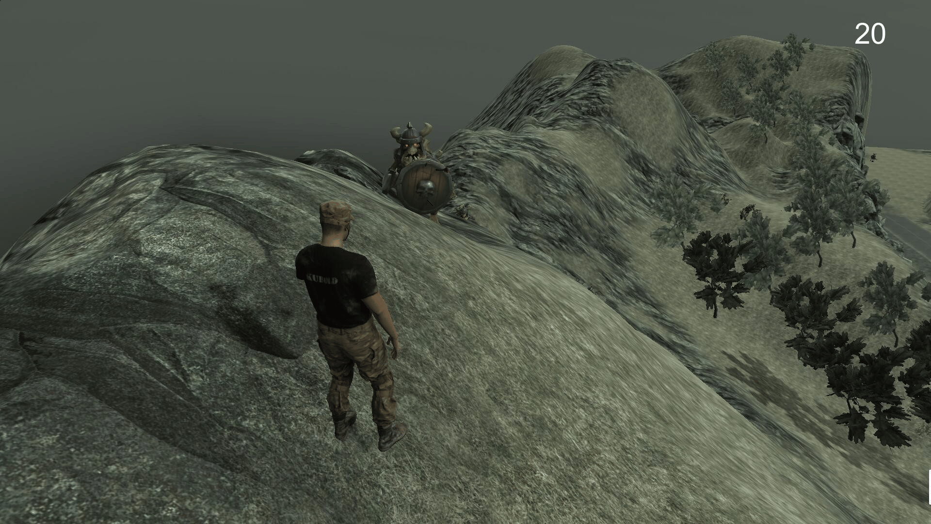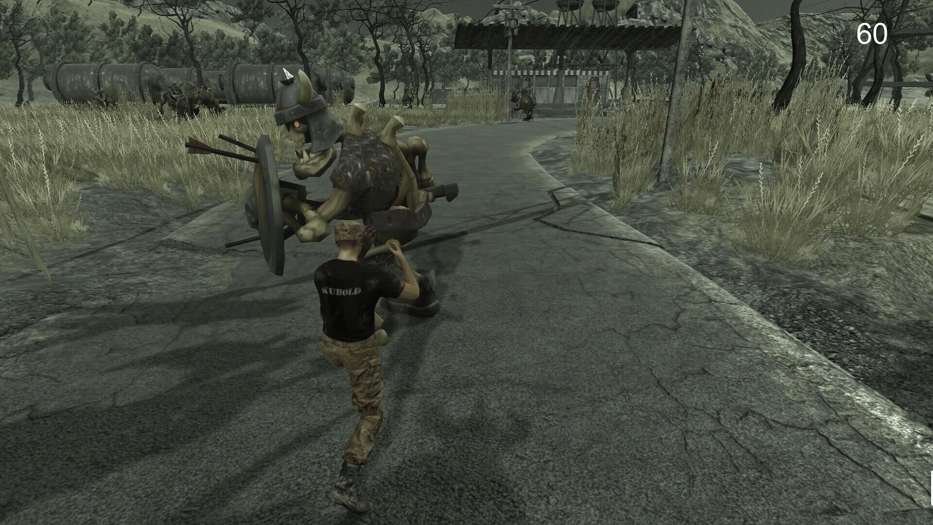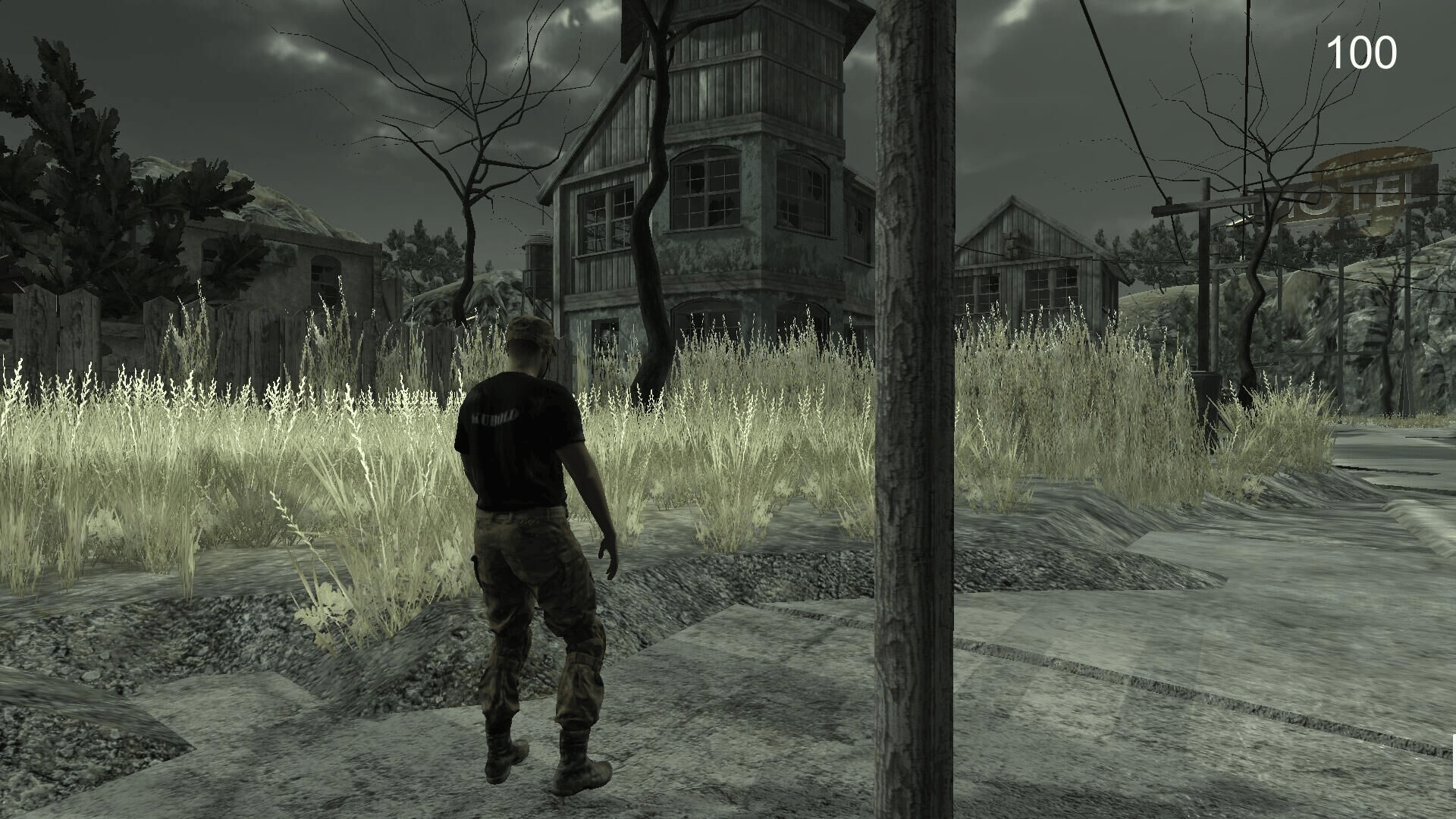 It's a third-person action game, played in a town filled with giant skeletons, players are free to explore the environment around the town. Players must avoid attacks by skeletons, or kill the skeletons, maintain health and survive.