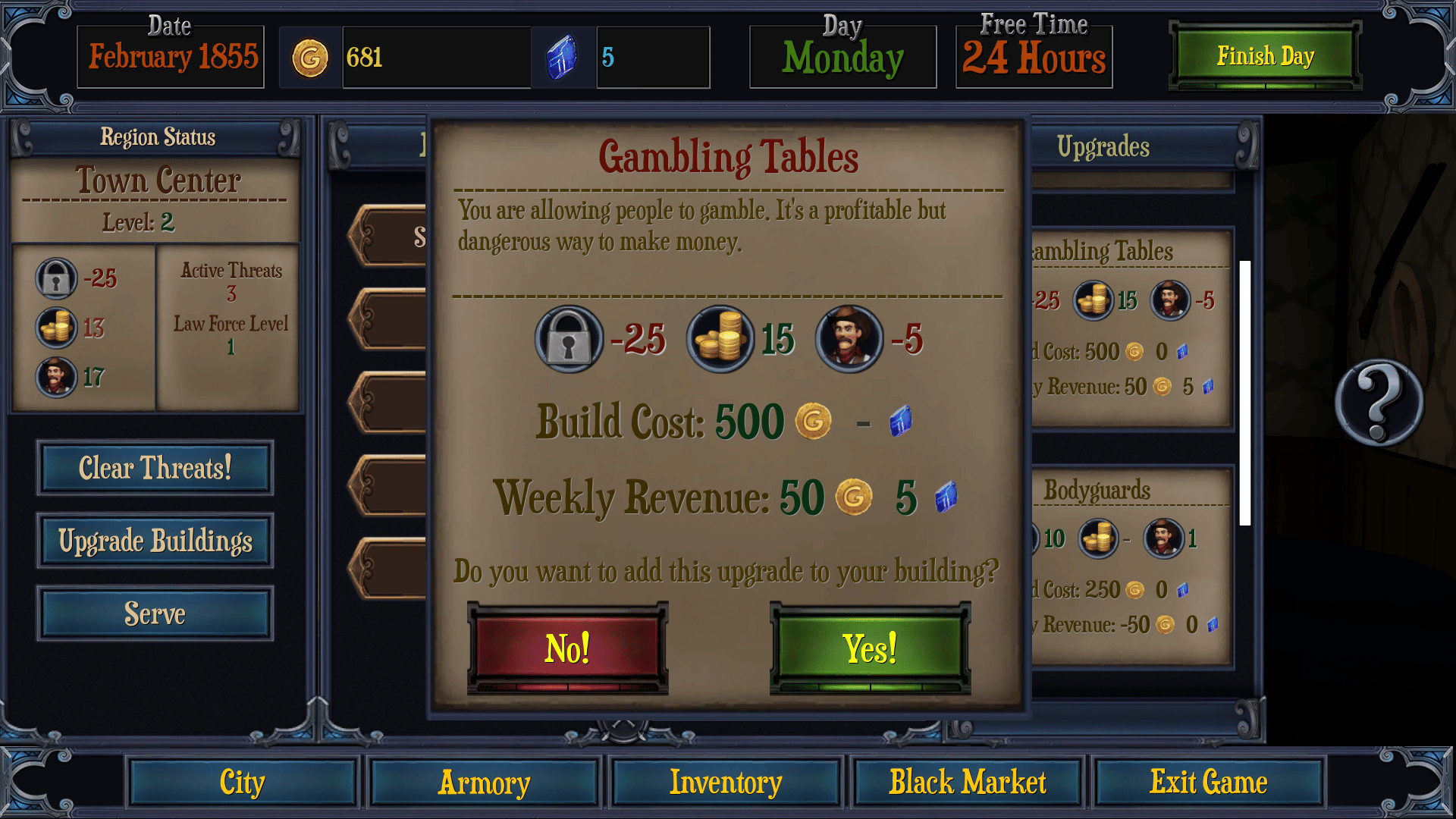 Rebuild and battle and improve. While your city growing, fight against the criminals in new style turn-base combats. Improve yourself, upgrade your buildings and get new items. Decide and live with the consequences. Rule with fear or Justice it's all up to you. Now it's your turn to be the Governor!