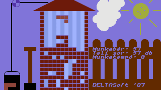 Kőműves Kelemen is an early Tetris variant that features a masonry theme where the tetrominoes are meant to represent bricks. Other than that the gameplay is almost identical to the original game. As the bricks fall from the top of the screen the player can move them left or right and rotate them. For each line cleared the player earns points and the game goes on until the bricks reaches the top of the screen. The aim is simply to get the highest score possible and reach a high position in the high score chart. Before starting out it's possible to choose the speed of the game (0-9) but unlike the original Tetris the speed is constant and doesn't increase as the game goes on.
