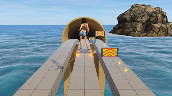 RollerPlay is a mix between rhythm game and a runner designed for Virtual Reality. You can also play it in non VR mode on a screen with a controller or keyboard. The game offers many levels but you can also create your own level or sequence of levels and even choose your own music.