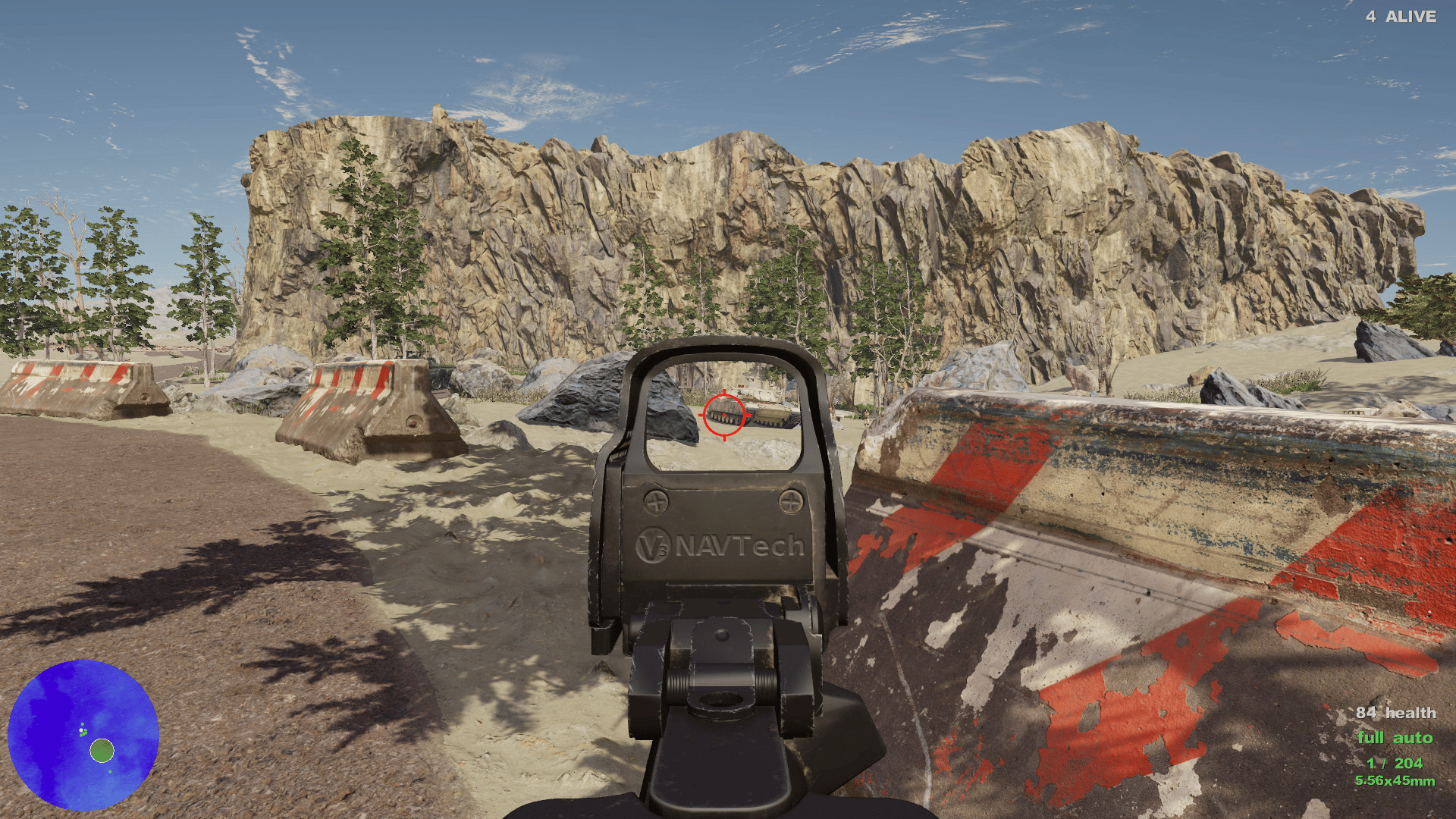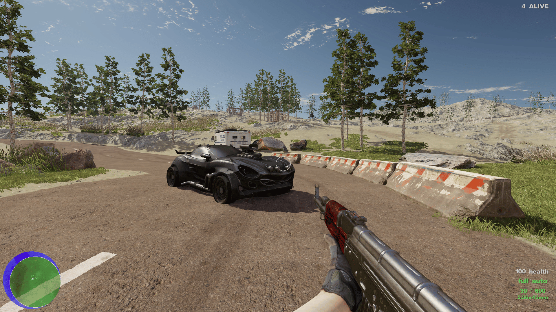 Combat Overrun is a new online multiplayer first person shooter - featuring Deathmatch and Battle Royale - combining a strong first person shooter with vehicle combat and racing. Race down a mountain road at 100 km/h, jump out of your fast car when you see an enemy, putting it into a spin and use it as cover!