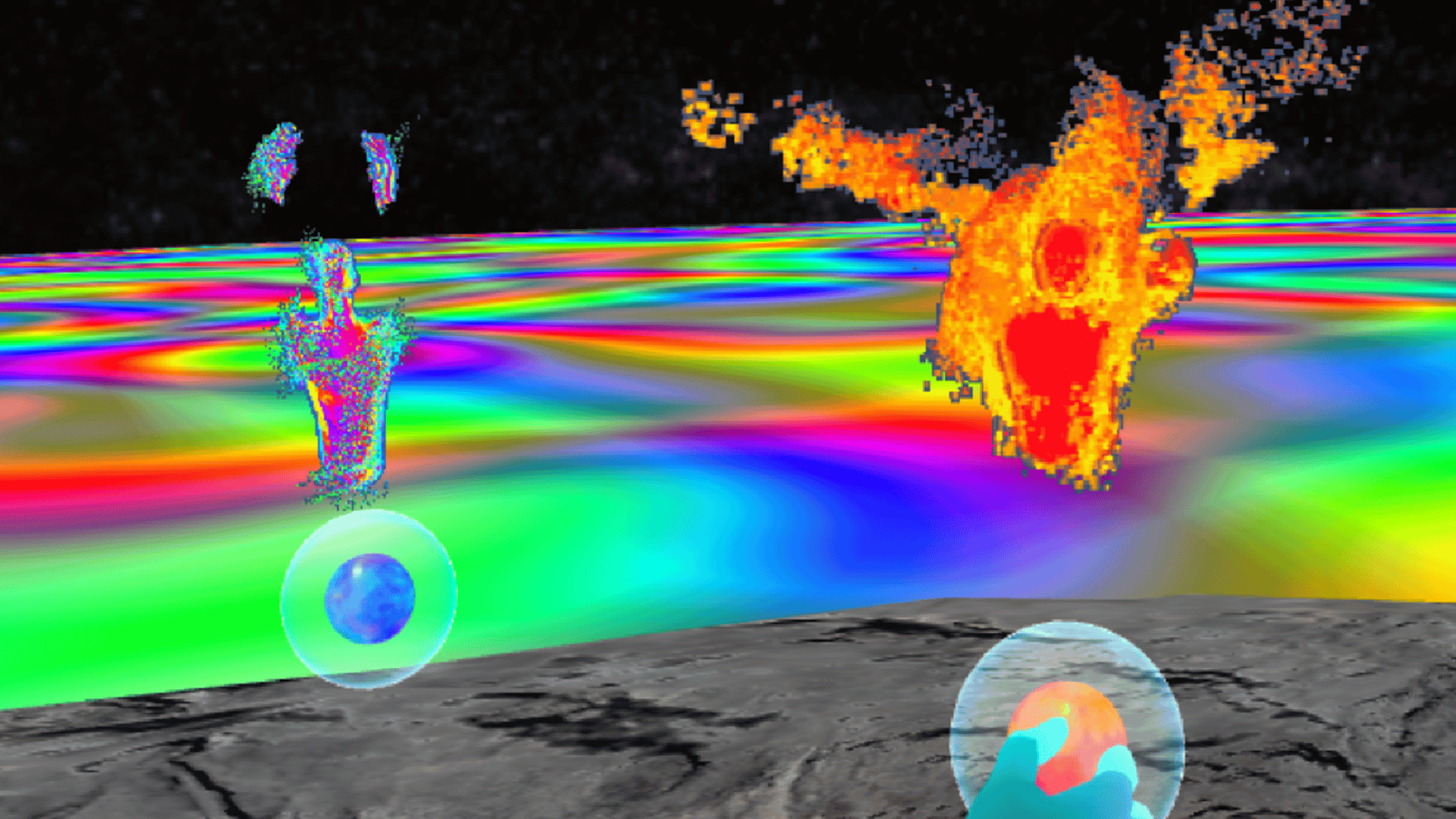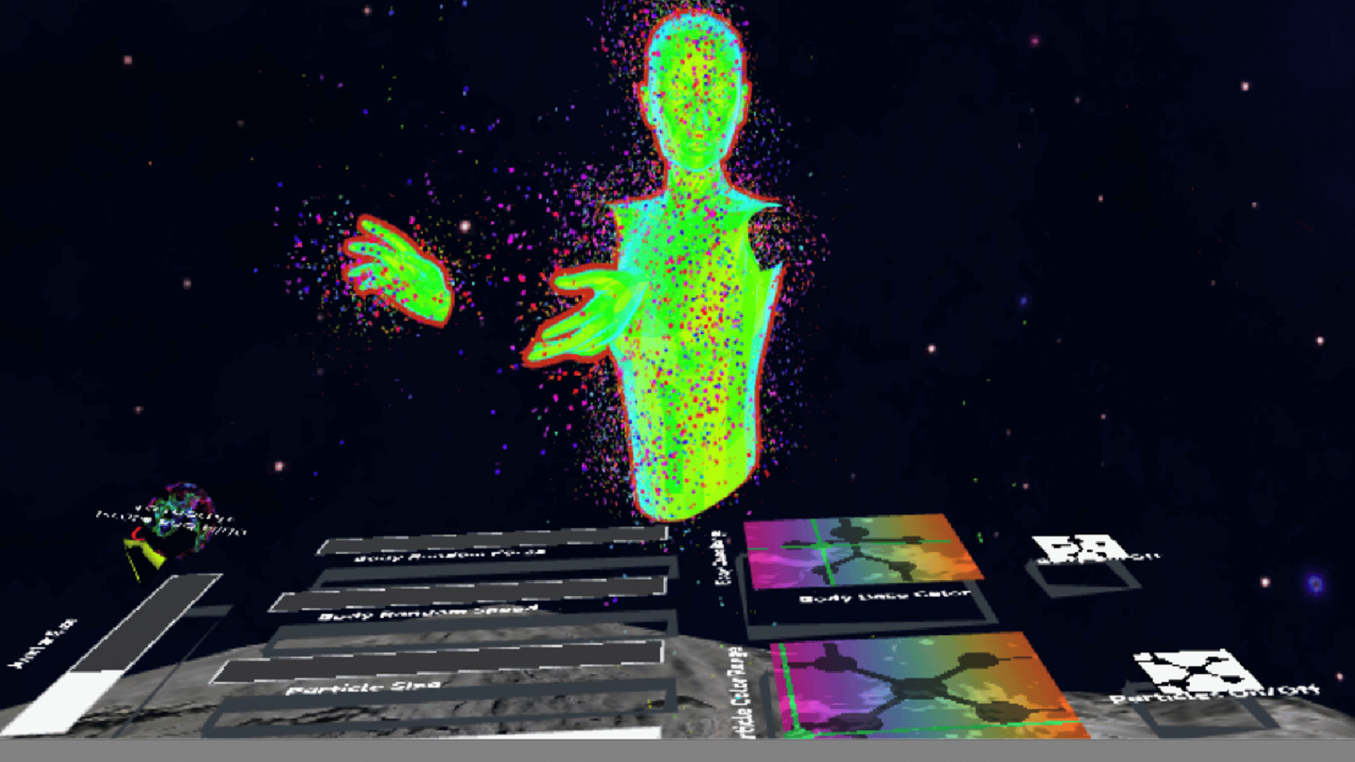 Meu lets you explore, record and share your body movements along with unique psychedelic filters and adaptive music that you control with your movements. Create your own body language communication with friends who have VR or share your moves as animated gifs.