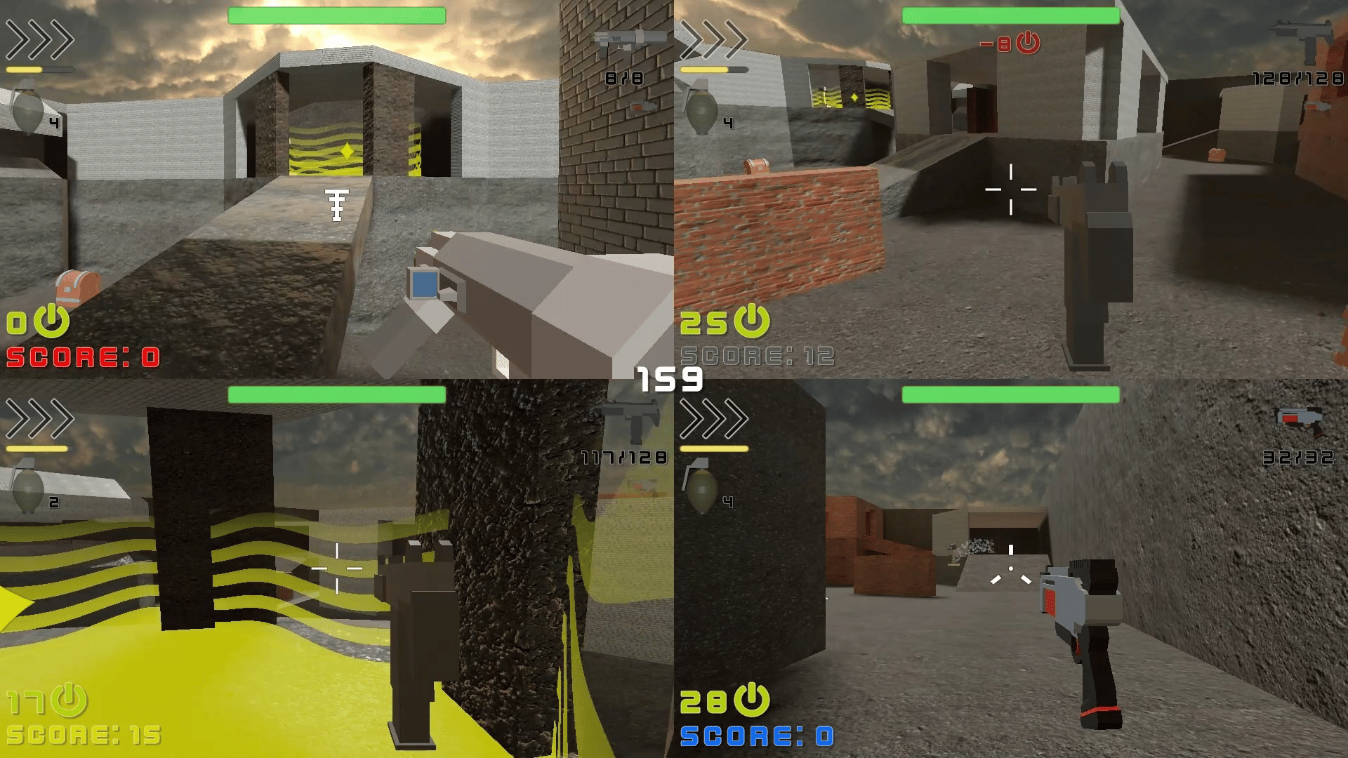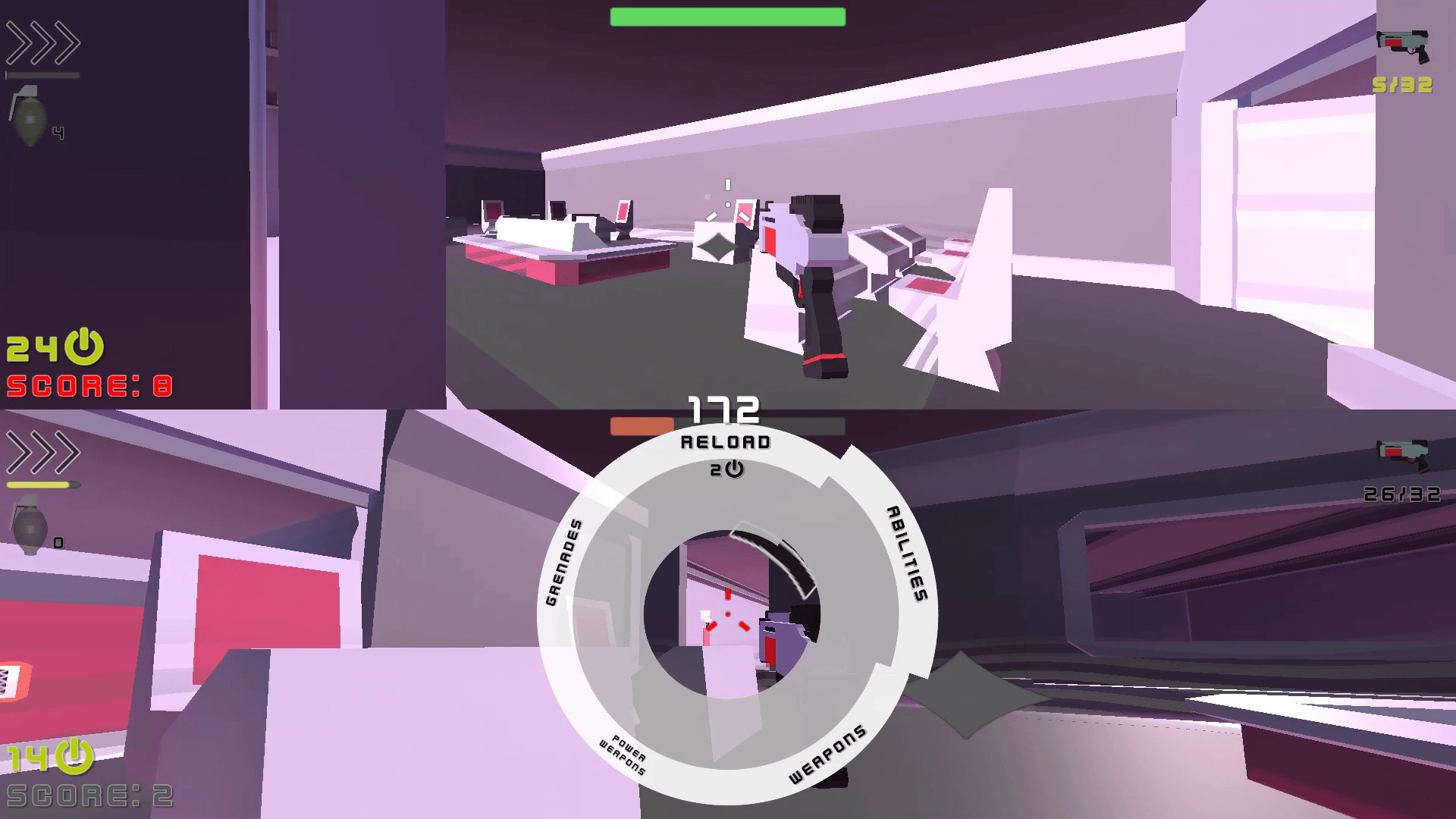 Engineer Arena is a frantic first-person shooter centered around earning "bits" used to buy weapons, grenades, and new abilities at any time, and using those to defeat your friends in classic console-inspired split-screen FPS action.