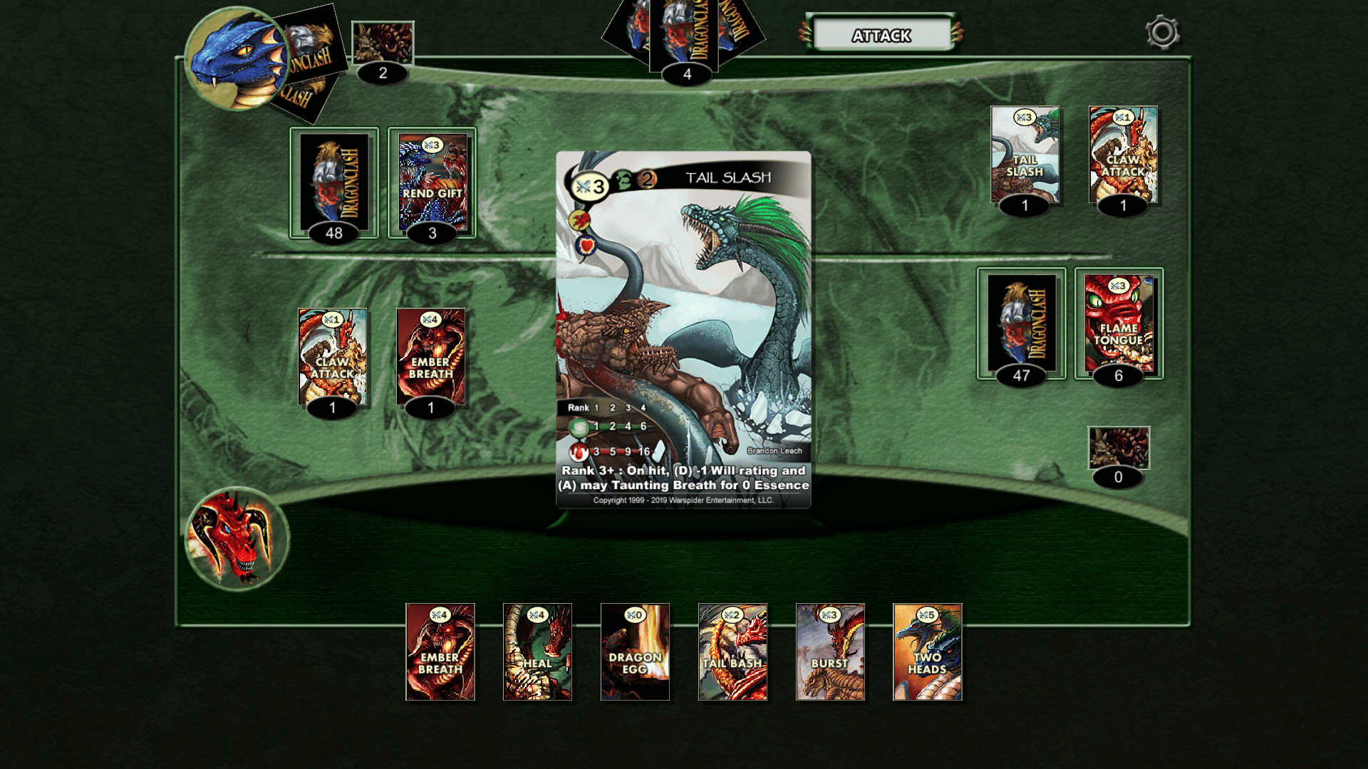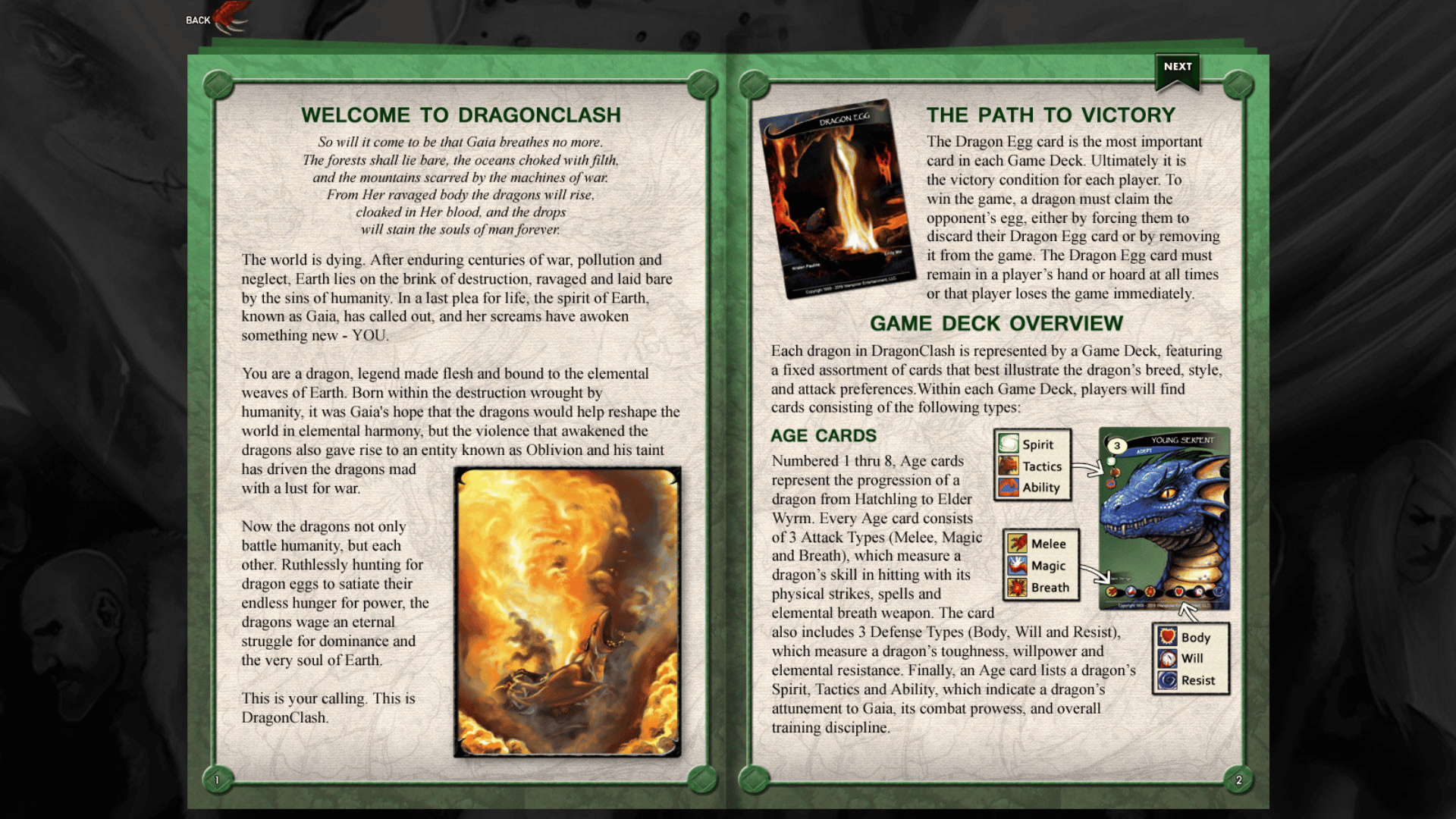 In DragonClash, you control a mighty beast of legend, raising a dragon from hatchling to elder wyrm. Become the dragon and conquer all that oppose you in this exciting, single-player card game of strategic dragon combat.