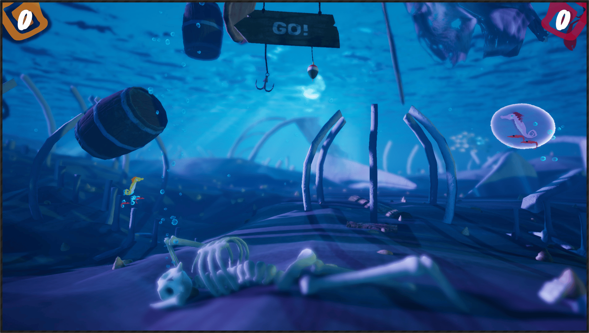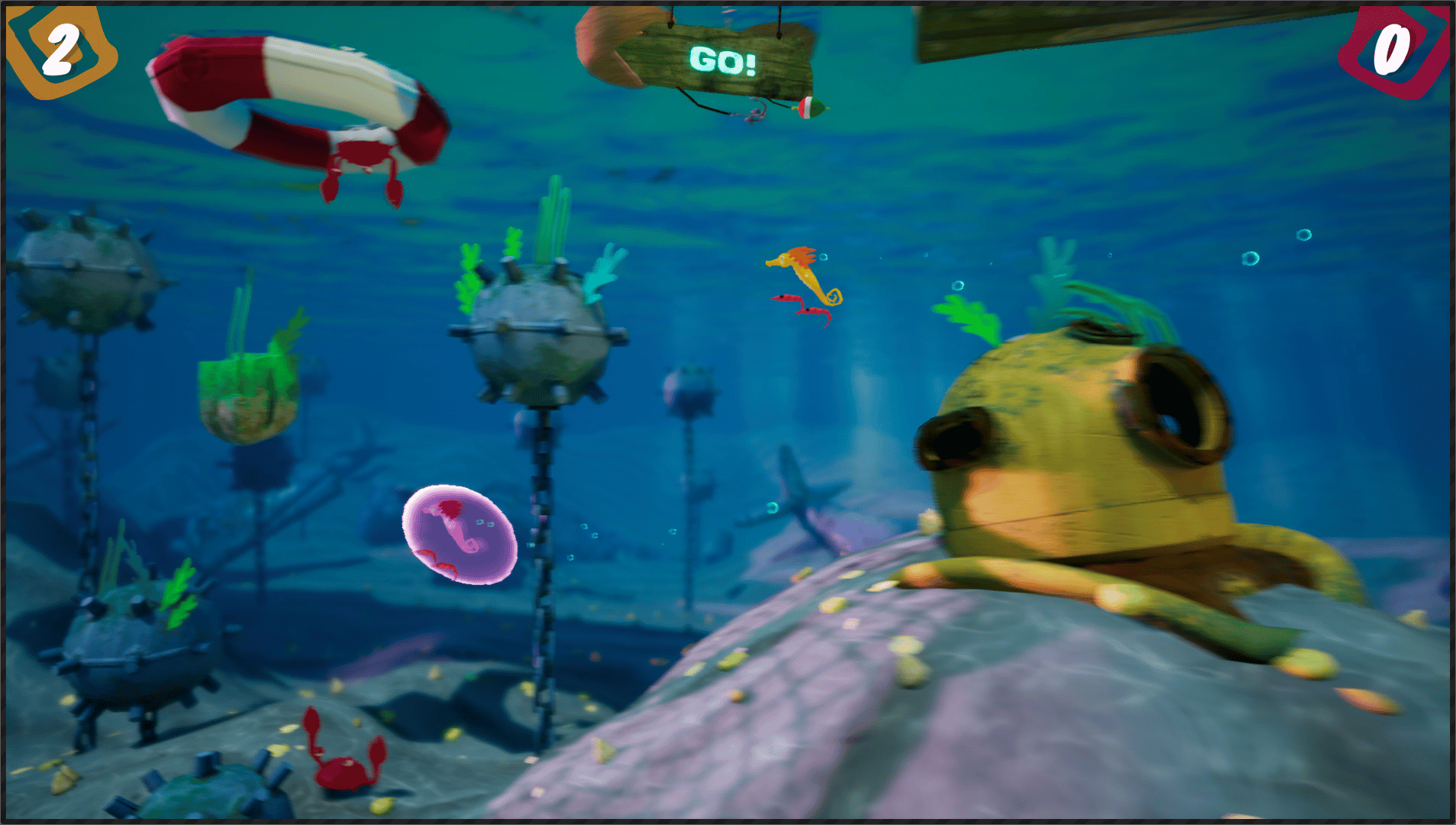 Fight for the bubble¡ Avoid the crabs¡ And outwit your opponent to become the best seahorse in the seabed¡ In Sea Bubble, two seahorses will clash. Who will arise?