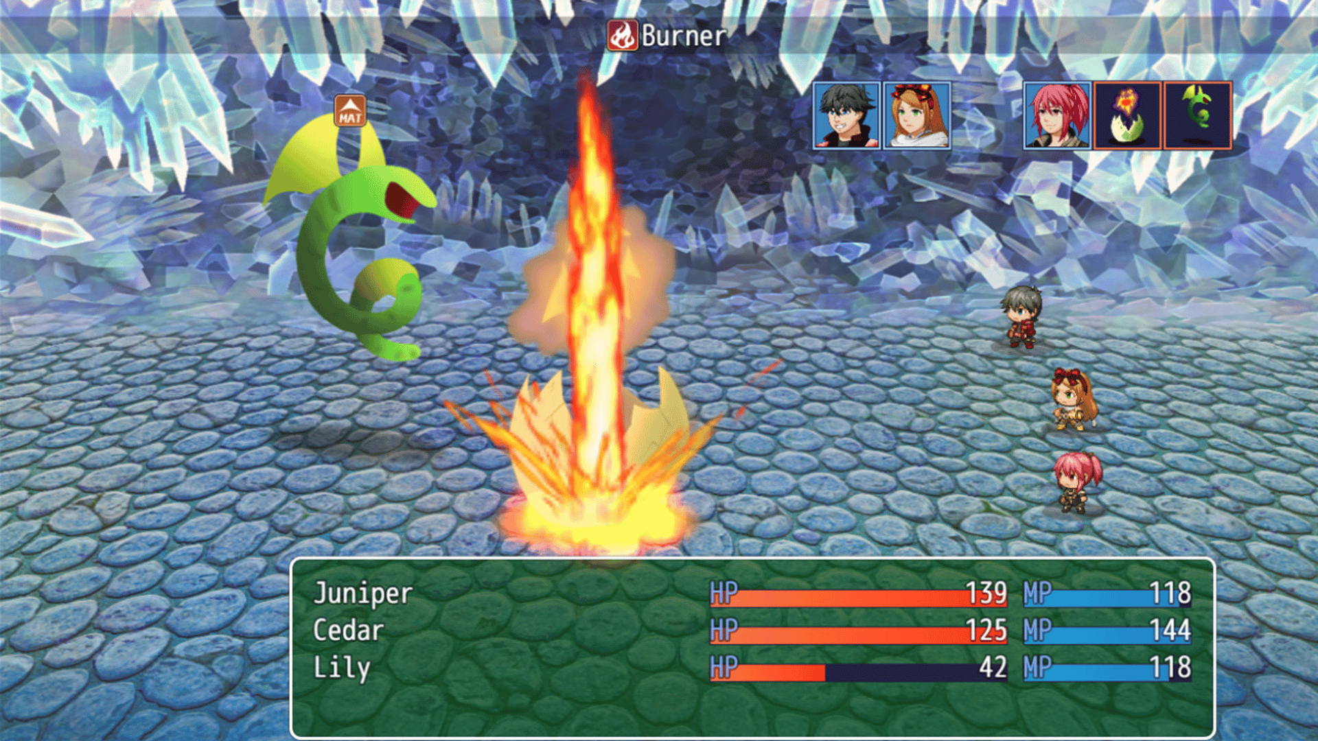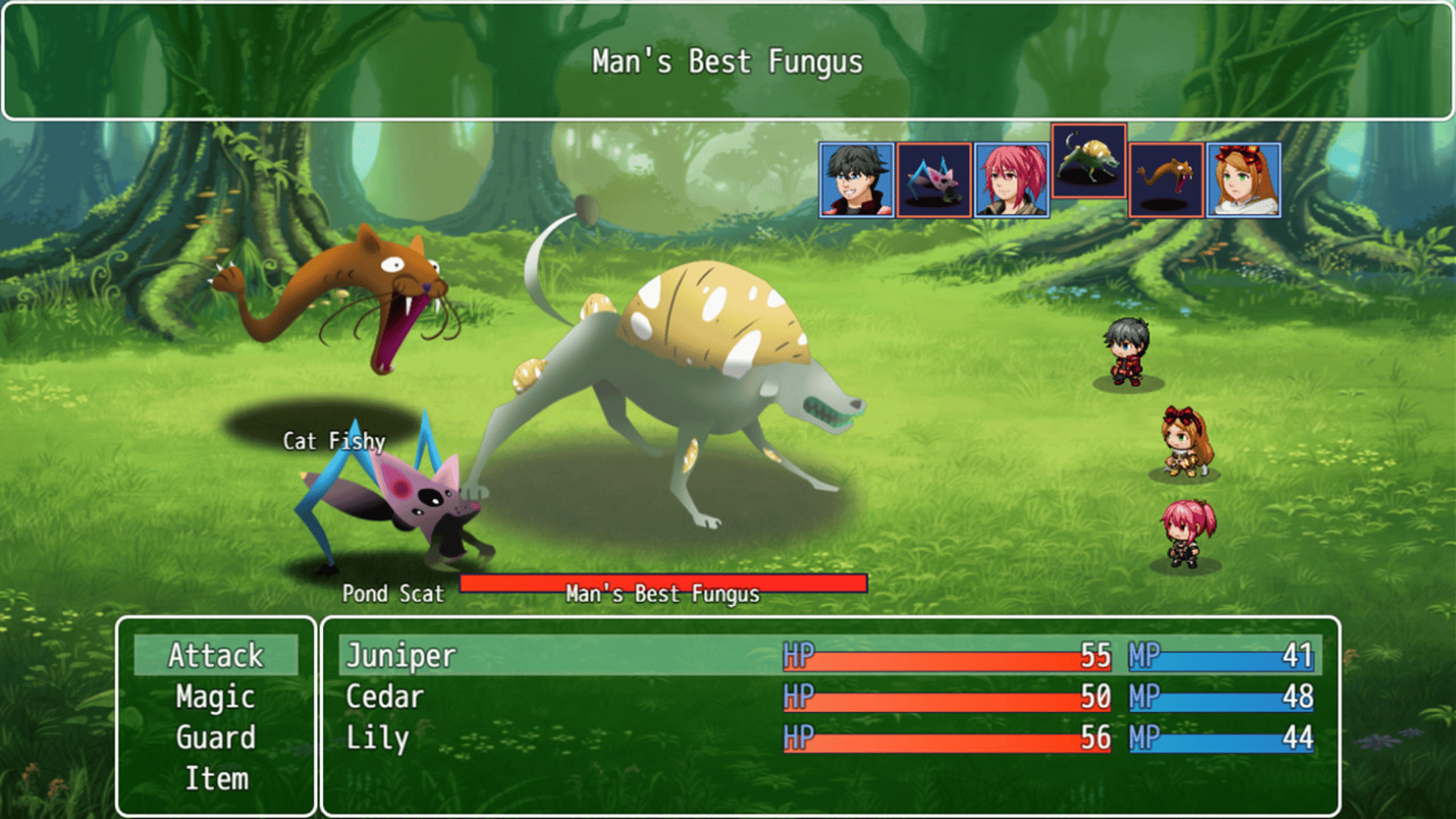 An accessible, turn-based RPG with a character-driven plot that places you in control of Juniper, Cedar, and Lily. Meet this world's fun citizens, explore beautiful maps, and bond with your party members through Stat-Boosting Dialogue Prompts to gain abilities and become the Hero this world needs!