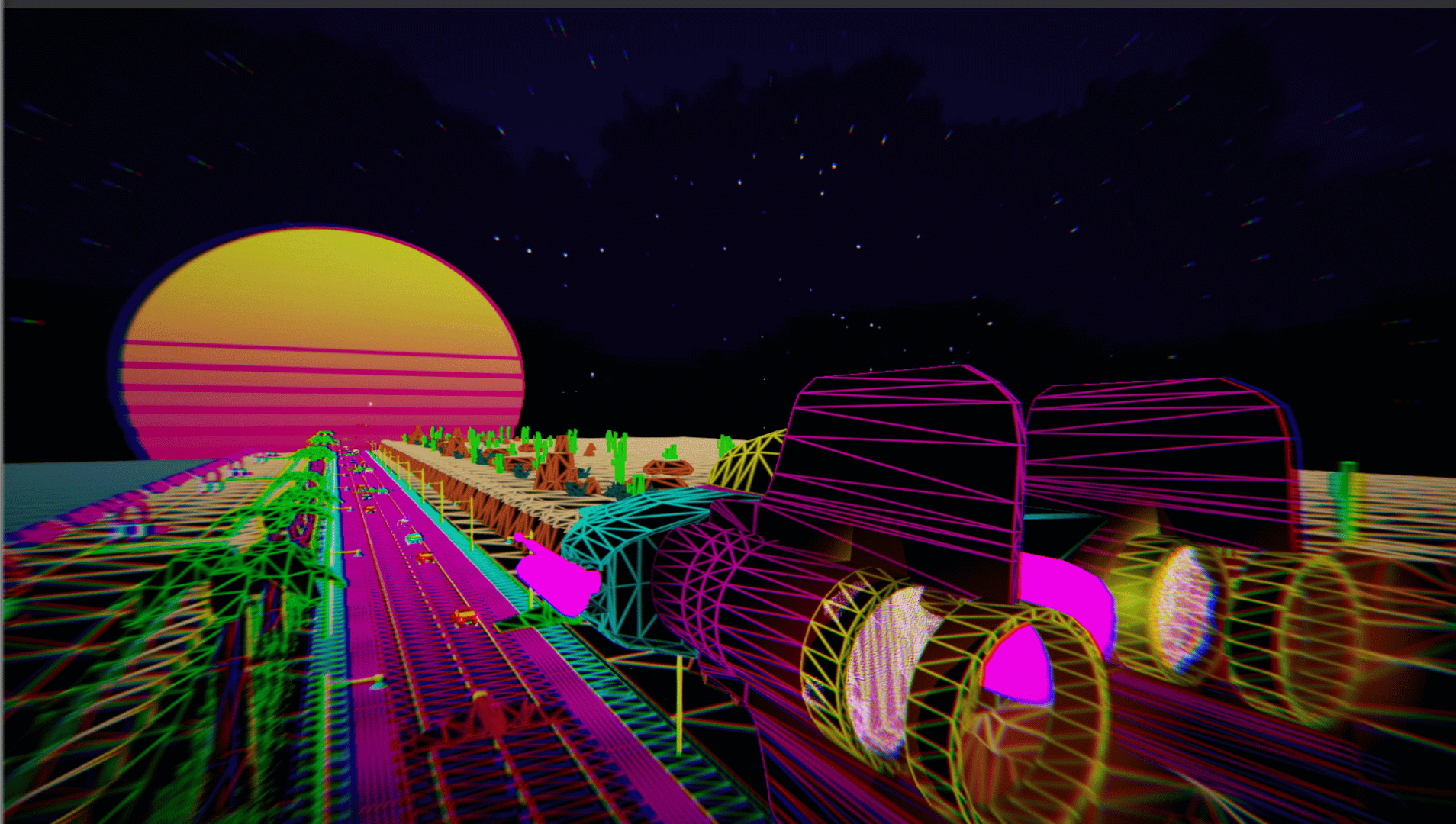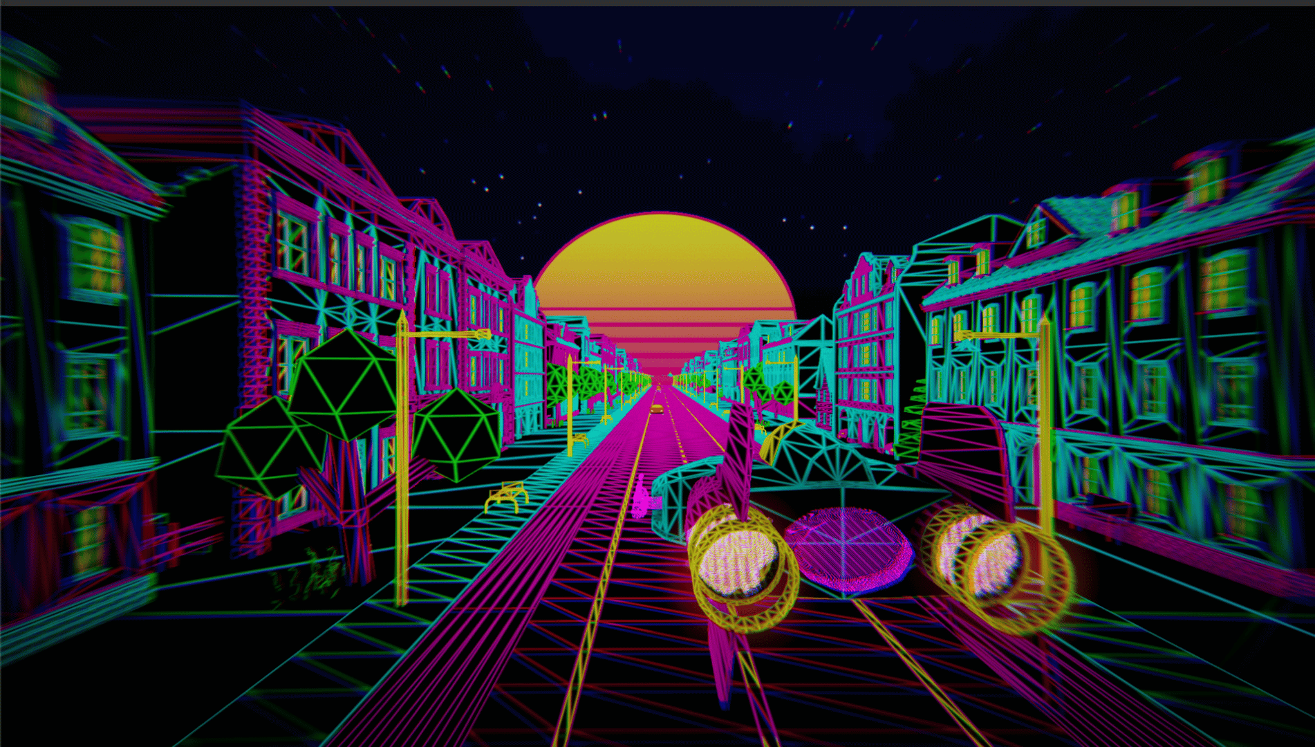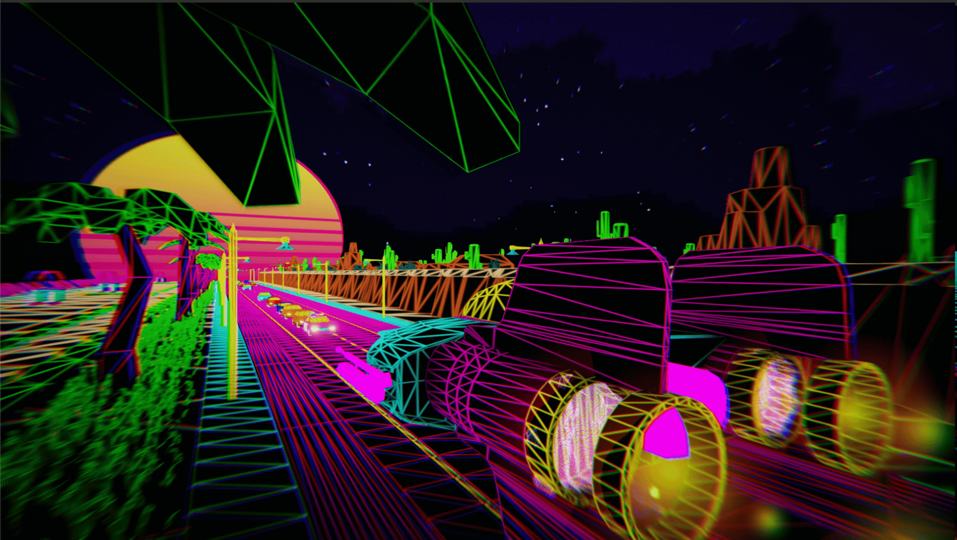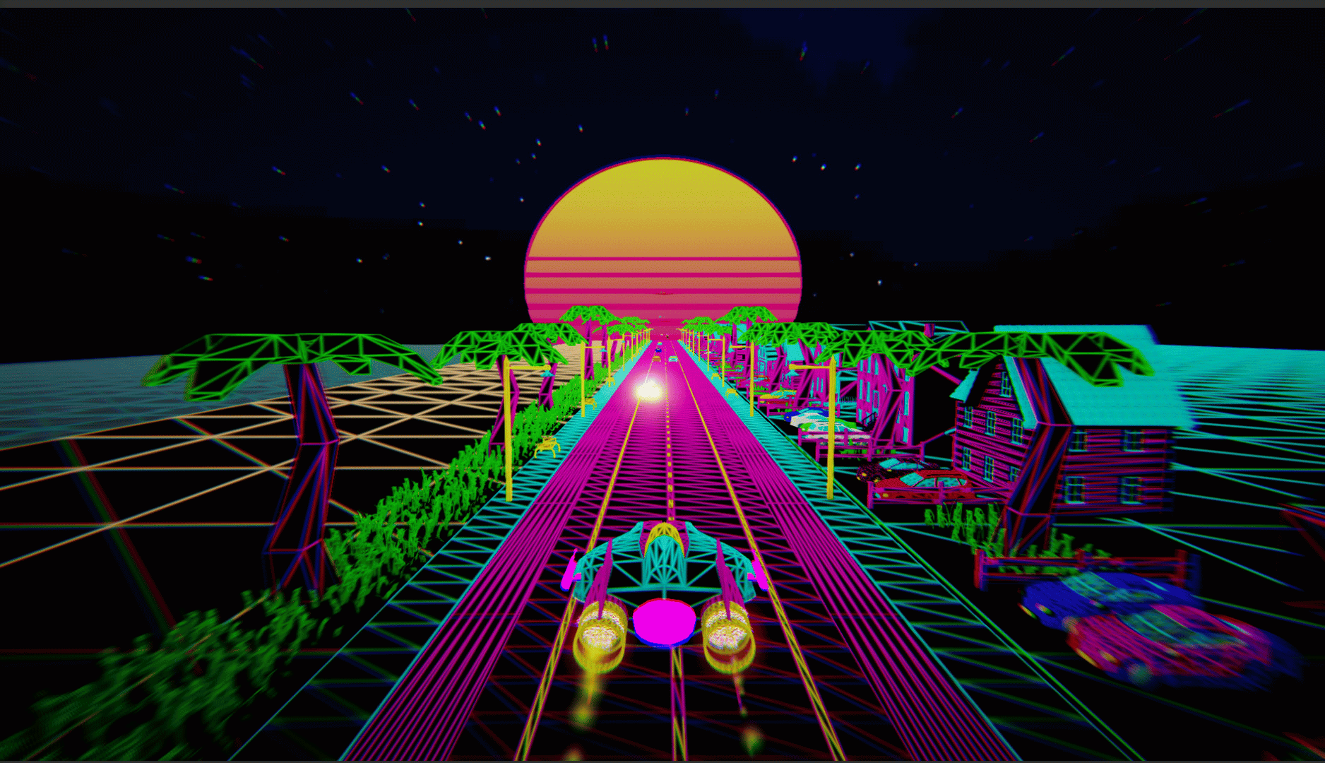 VaporFly is an Outrun/Cyberpunk themed, music and theme oriented endless runner experience. Our goal is to introduce you to a robust but chilling experience of a rendition of Vaporwave by us.
