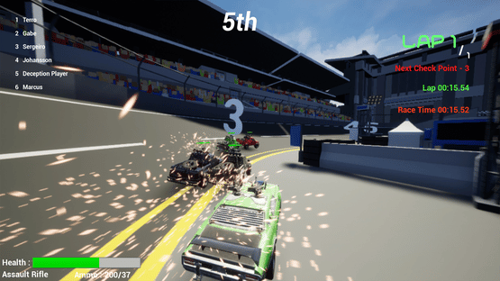 Participate battle racing races with armored cars. Win and gather trophies in this lowpoly battle racing...
