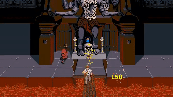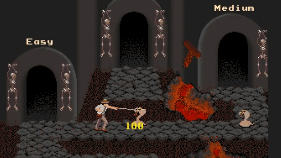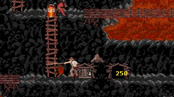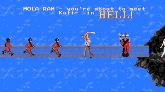 As Indy, the player must complete several cycles of the following three types of levels: 1.Mine level: Whip your way through a mine in order to free children that are held captive. Use your whip to swing across chasms, climb ladders, ride along conveyor belts and defend yourself against attacks from Thuggee guards, bats, snakes and the fireball-throwing Mola ram. Escape with the mine cart after you've freed all children. 2.Mine cart level: Pick the right route through a network of tracks while riding in a mine cart. Avoid potholes, broken tracks & guards in carts and safely reach the end of the track. 3.Temple level: Make your way to the altar and grab the Sankara stone while Mola Ram, bats and Thuggee guards attack you. Watch out for that lava.