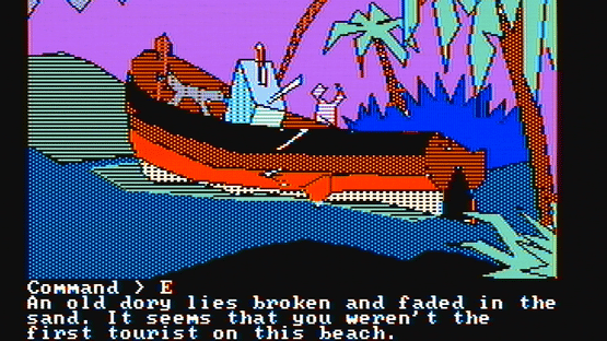 You awake in a hut on a deserted island, with a headache and no memory. The PC version is a PC bootable.