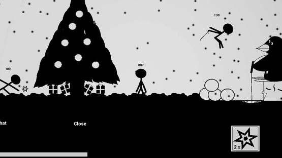 2 to 15 ninjas can fight at once. In this black and white world seek out and destroy your opponents. Travel to three different lands. Kill your enemies as you leap from tall trees, hide behind a simple house, even a snowman, as you chill out in winter wonderland. Finish the job with a shuriken or do it with your deadly sword.