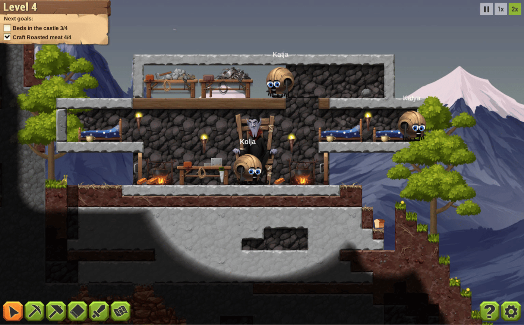 You begin as a beaten Dark Lord in castle debris. Good news: you still have cute loyal servants to obey your orders and one superpower - you can teleport the whole castle with all your belongings when you want. Explore maps, mine resources, use your ingenuity to invent tricky traps.