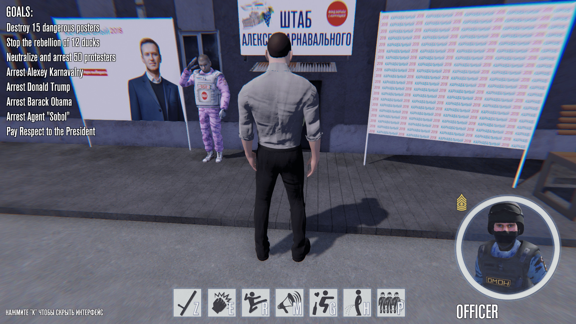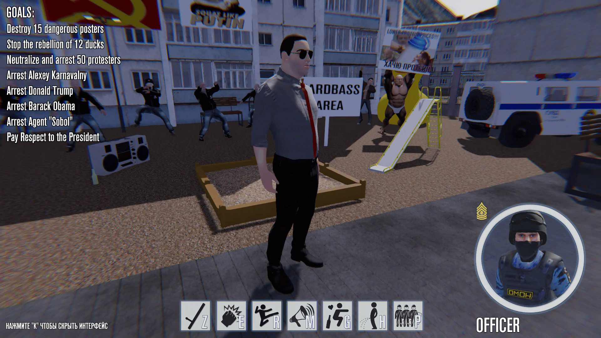 You are an officer in a special unit called OMON. Ensure the safety of citizens at rallies, protests and public actions. Take care of the protection of the first persons of superpowers. Play and arrest people with friends in a Co-op!