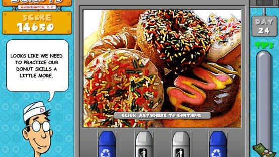 Join Digby as he opens a chain of donut shops in Digby's Donuts. Catch, stack and drop colorful donuts to form matches while earning big tips. As Digby's new employee it's your job to catch the donuts when they come fresh out of the oven, and stack them in the display counter. Stack them in groups of three by frosting color and they'll disappear down the customer's throats, earning you big tips. Digby's Donuts is a deliciously addictive (and non-fattening) treat for the whole family!
