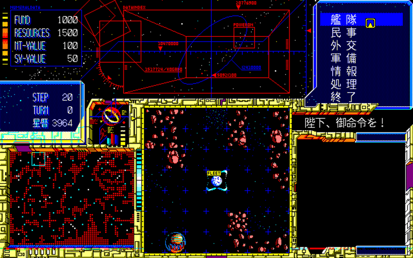 Teikoku no Haishin is a sequel to Kyōran no Ginga: Schwarzschild. The events of the game take place in 3964, four years after those of the previous game. Natural disasters and the military strategies of the Honsha Empire have turned the Jiro star cluster region into a realm of chaos and unrest. A new kingdom was established in the Somari star system, and was denied a peaceful existence following the combined military actions of the countries Lossaria and Tristia. The player must defend the kingdom and win the upcoming war.