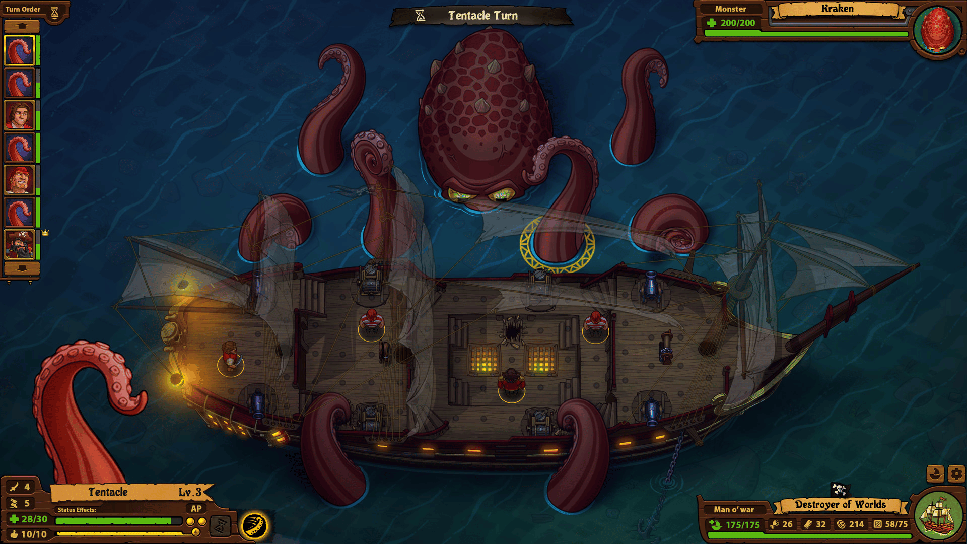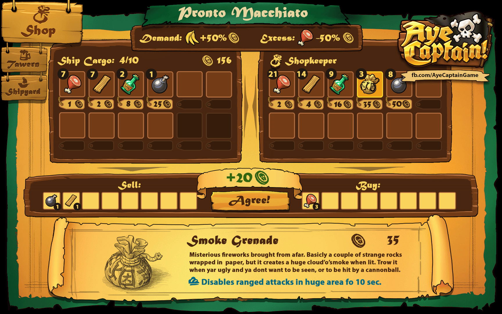 In Aye Captain! as a Pirate Captain you recruit and manage crew members, acquire new ships and upgrade them to cross swords and cannons with many other swashbucklers during turn based battles.