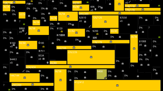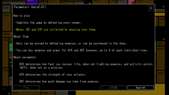 A minimalist RPG where all gameplay elements (enemies, stores, loot, treasure) are represented with squares on a grid.