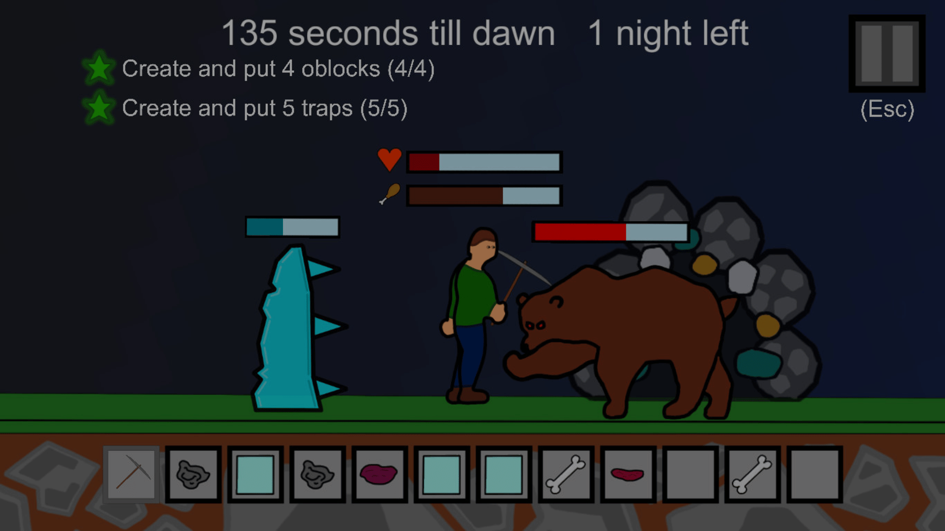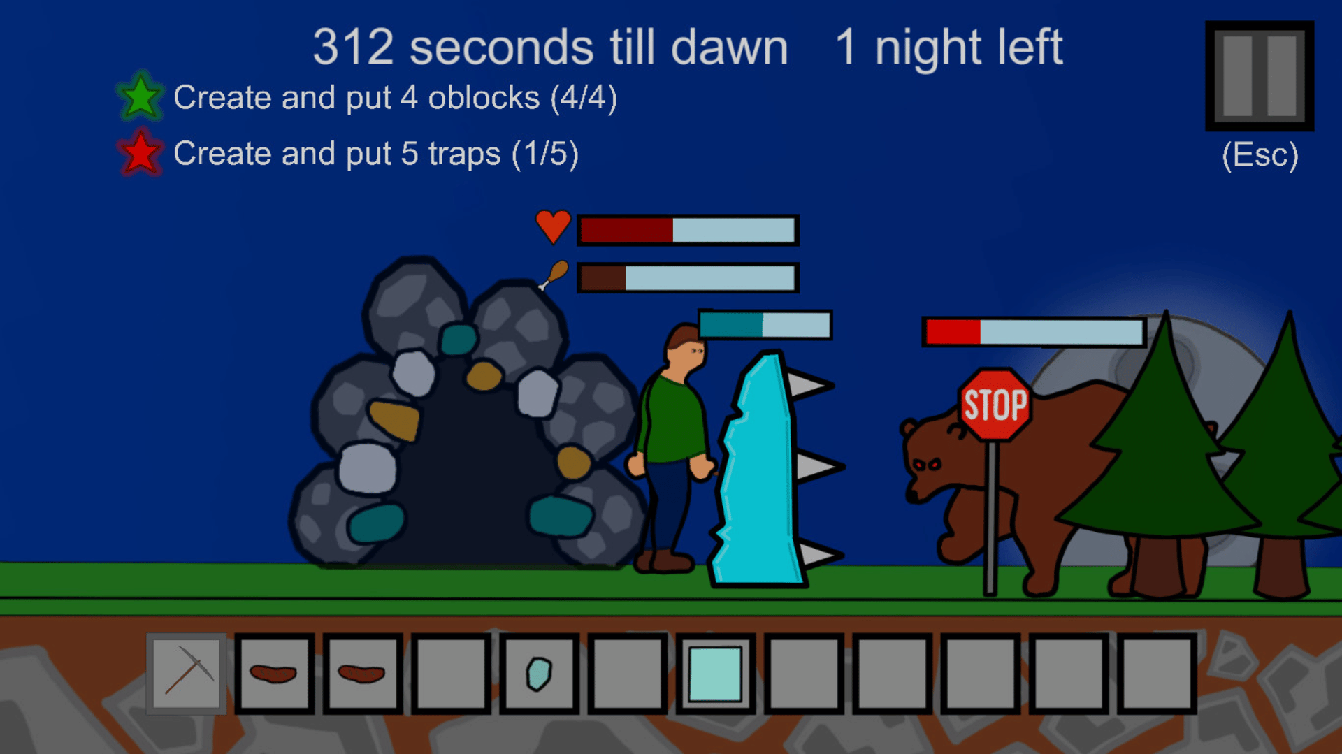 Woodcutter survival is an interesting, sometimes hardcore game. Here you have only one goal - to survive! You have to get resources, create new weapons and tools to fight wolves and bears. Don't forget to eat on time or you'll die!