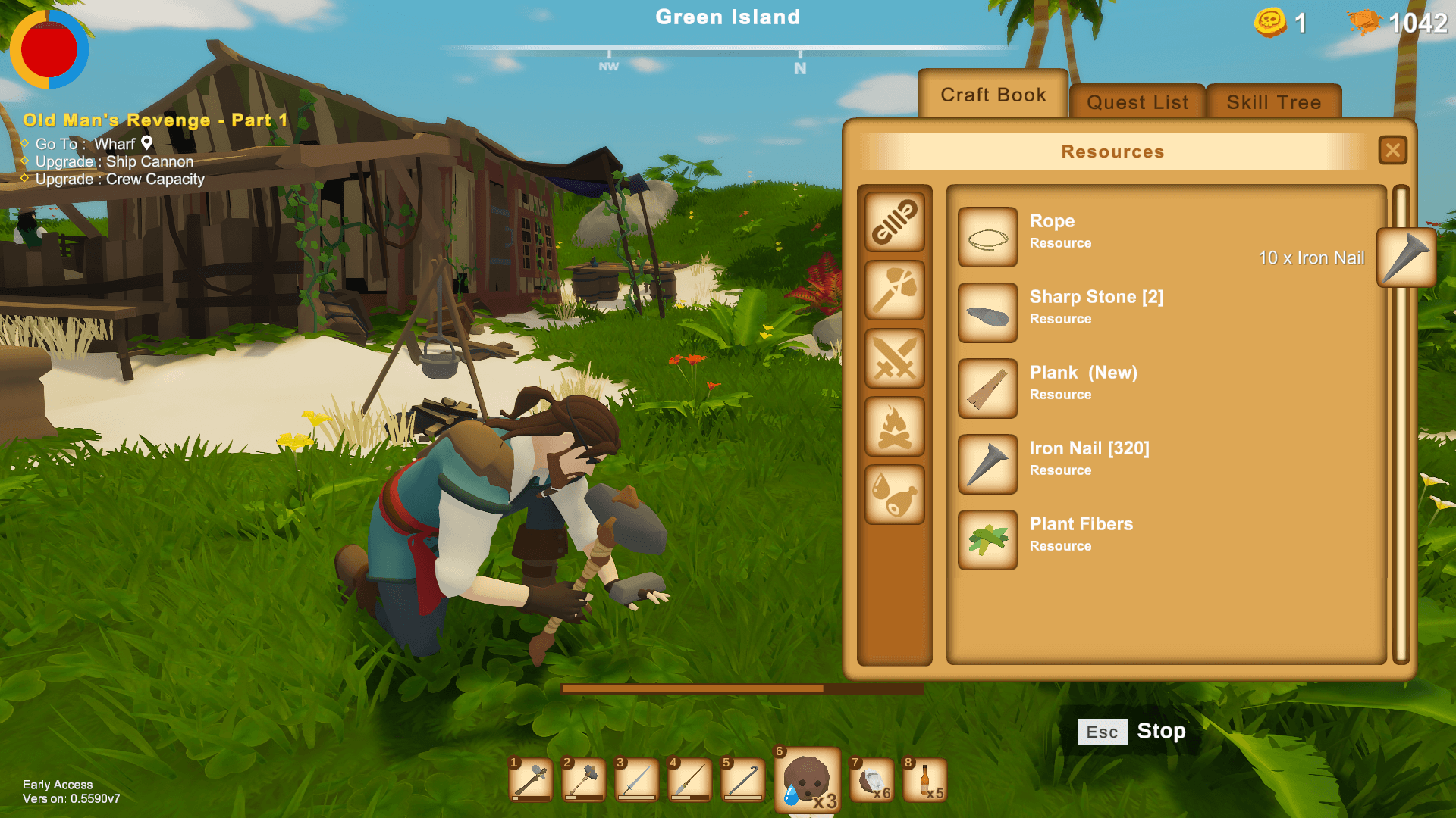 Captain Bones is an open world game about an ordinary crew member becoming a great pirate captain. To achieve this, he must first survive with what he has collected from the environment. Then, he must find himself a ship and a crew.
