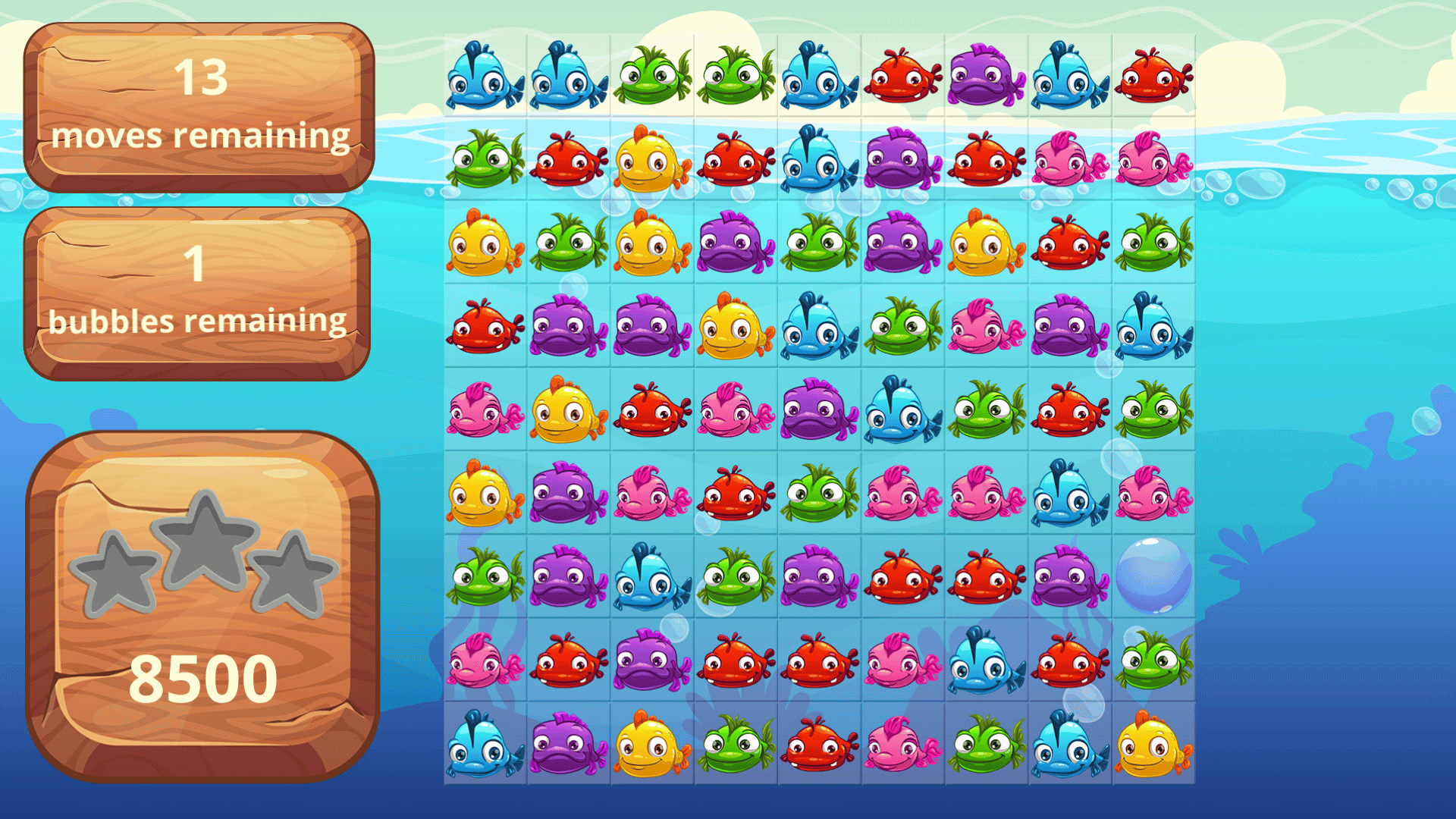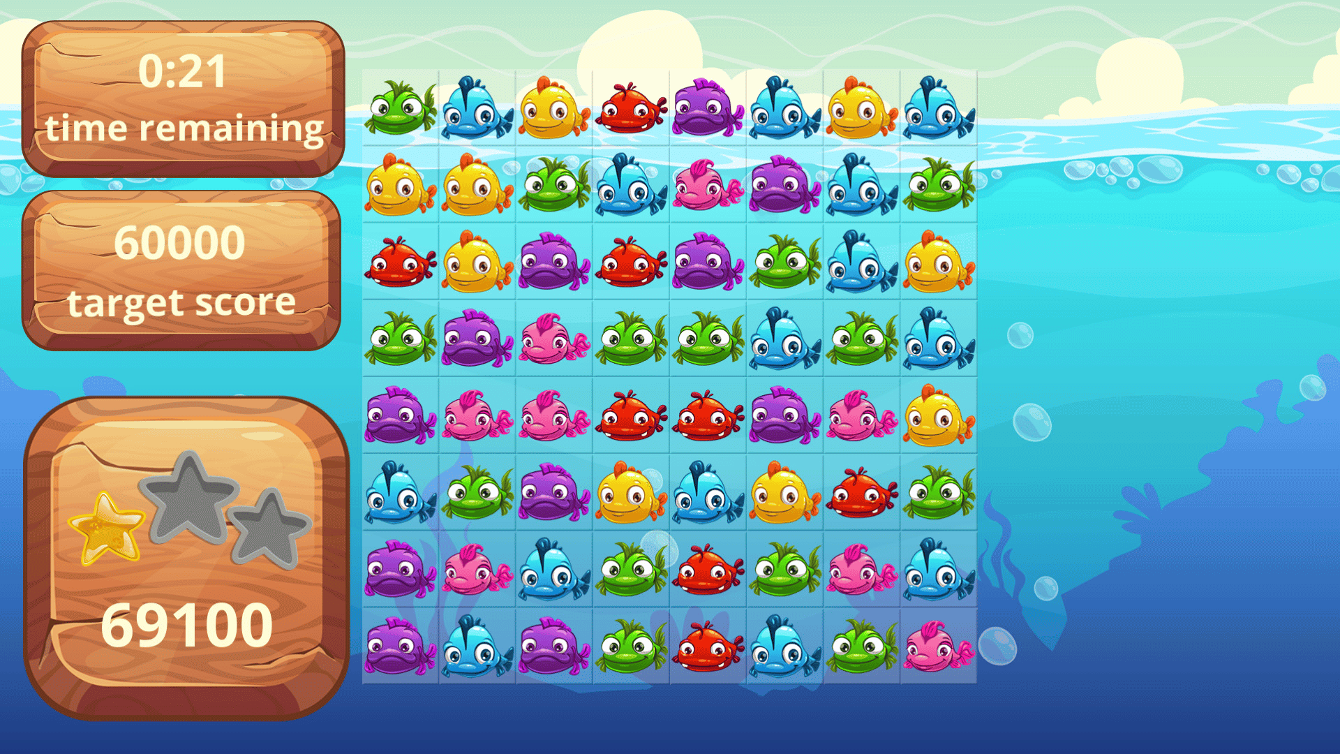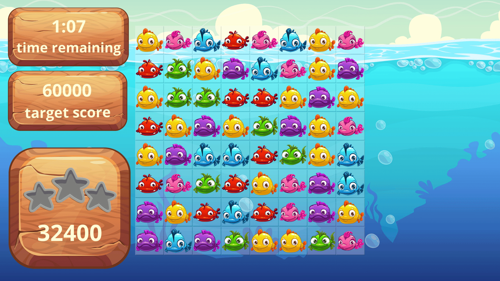 The classic and many favorite genre of three in a row is now on the theme of fish. Move similarly colored fish in a row vertically or horizontally to...