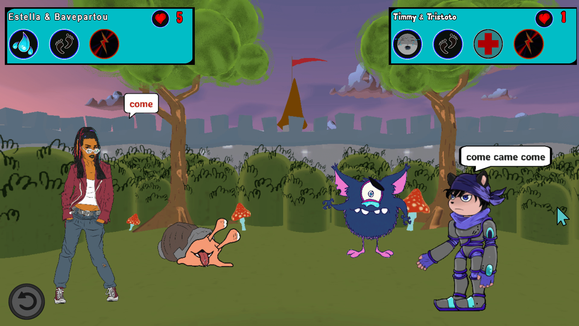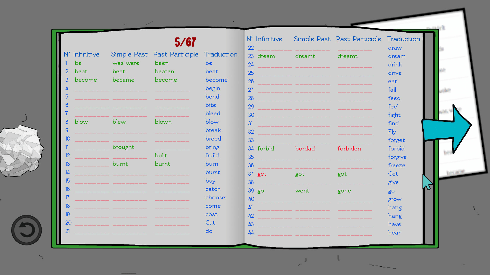 A cartoon adventure game. Capture "VerbMons" using irregular verbs. Catch them all!