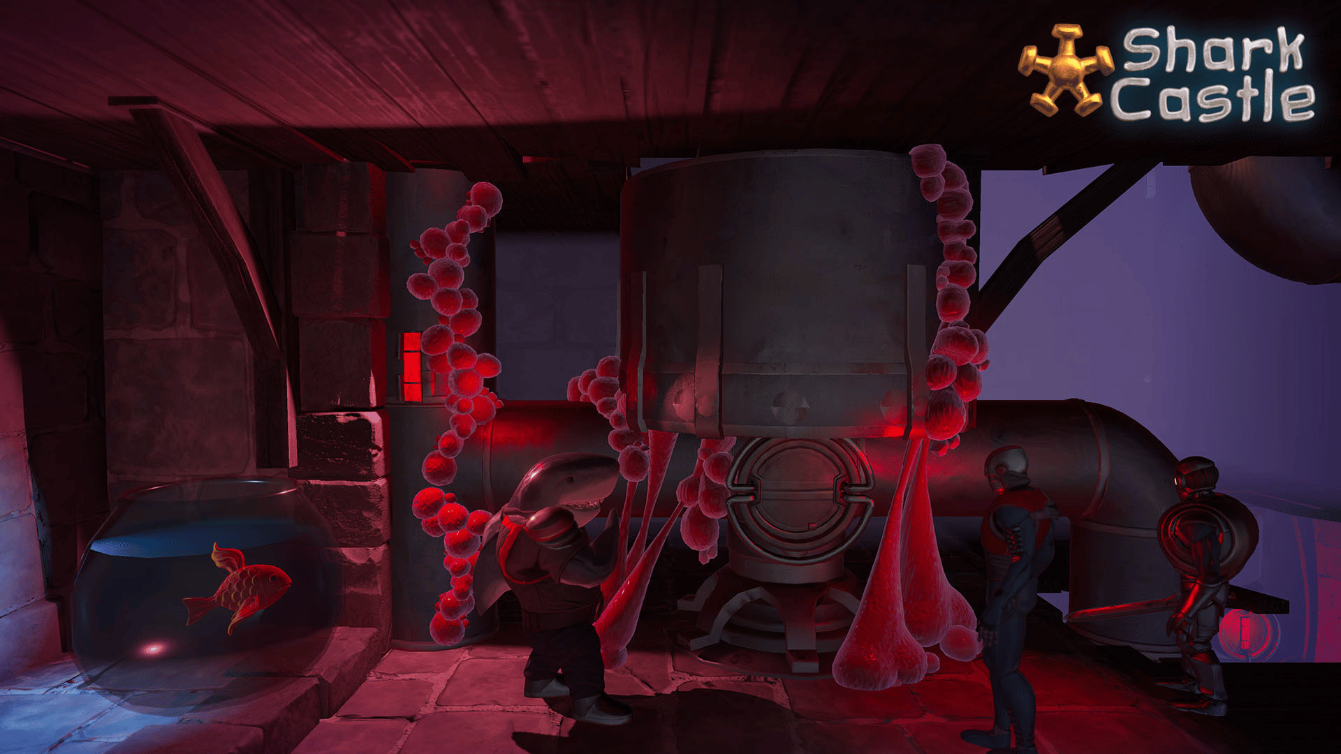 An atmospheric adventure featuring a sentient shark. Your castle is overrun with pollution, endangering you and your friends! Navigate toxic pipes, avoid robot minions, and save your home.
