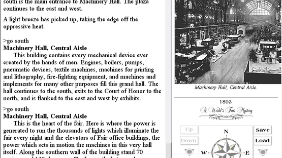 1893 is an interactive fiction game that is accompanied by photography. The game explores Chicago's seedy history of crime; in this case, theft and kidnapping.